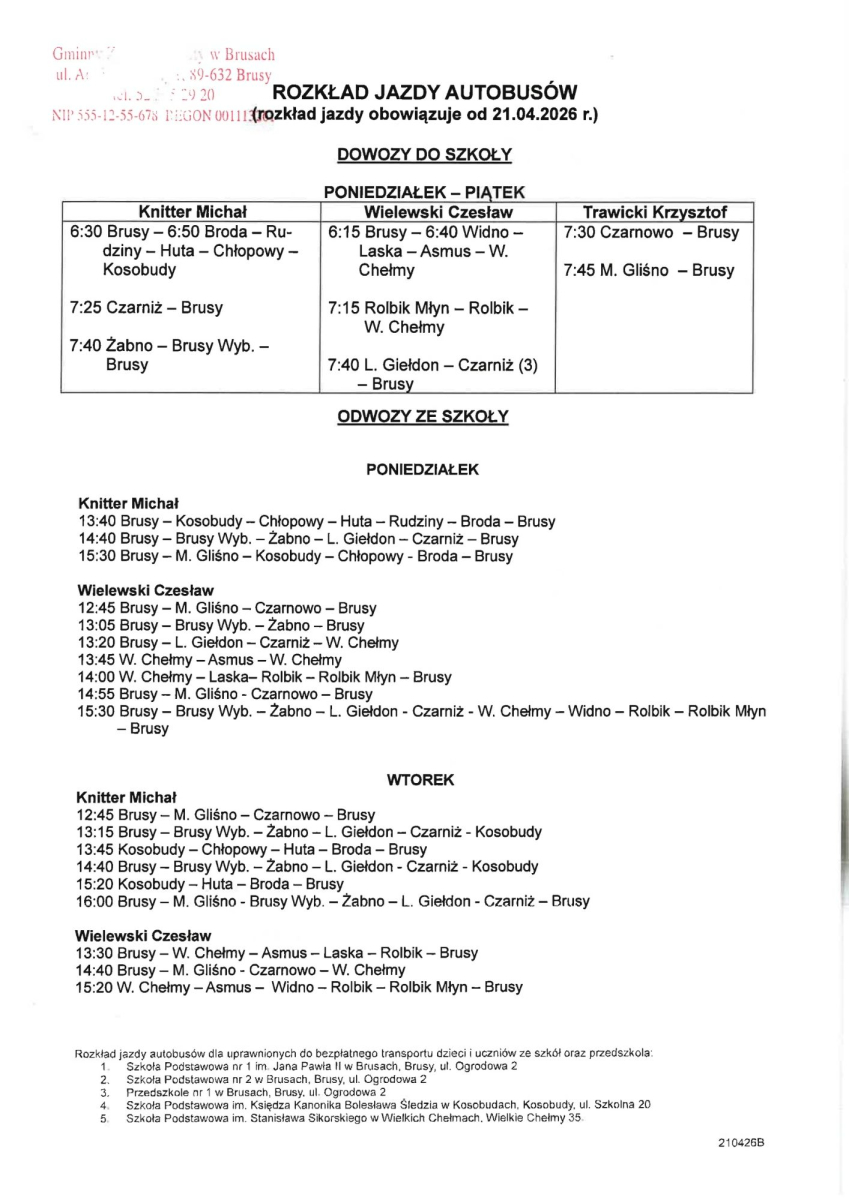 NOWY ROZKŁAD JAZDY AUTOBUSÓW (rozkład jazdy obowiązujący od 21.04.2026 r.)