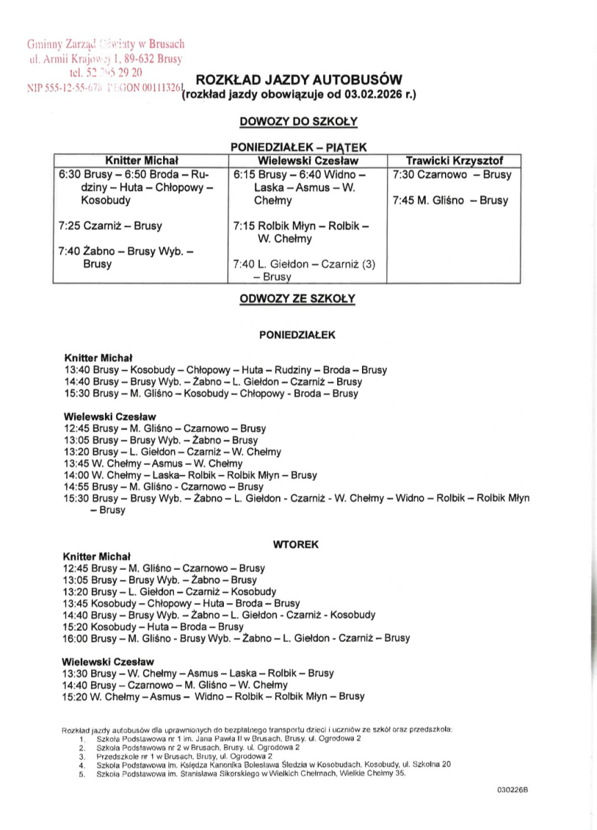 NOWY ROZKŁAD JAZDY AUTOBUSÓW (rozkład jazdy obowiązuje od 03.02.2026 г.)