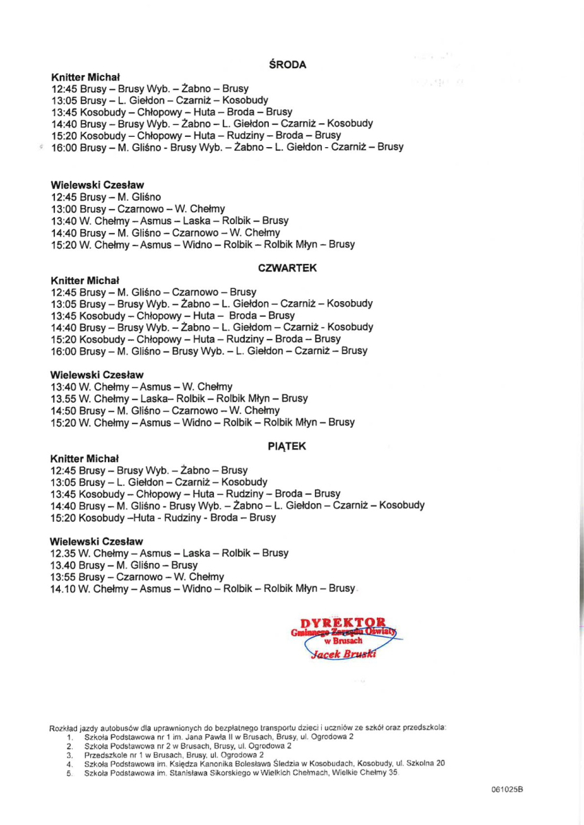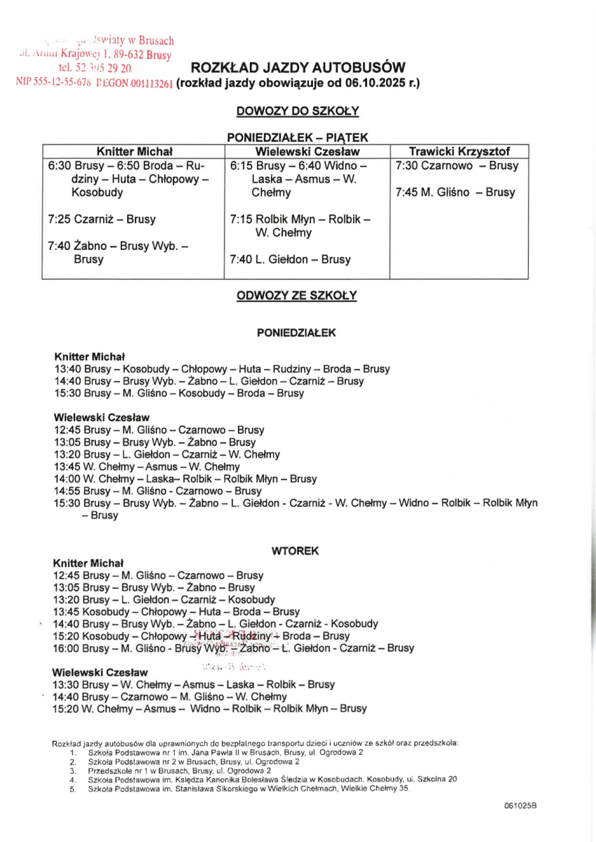 ROZKŁAD JAZDY AUTOBUSÓW (rozkład jazdy obowiązuje od 6.10.2025 r.)
