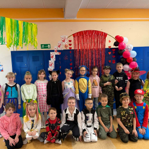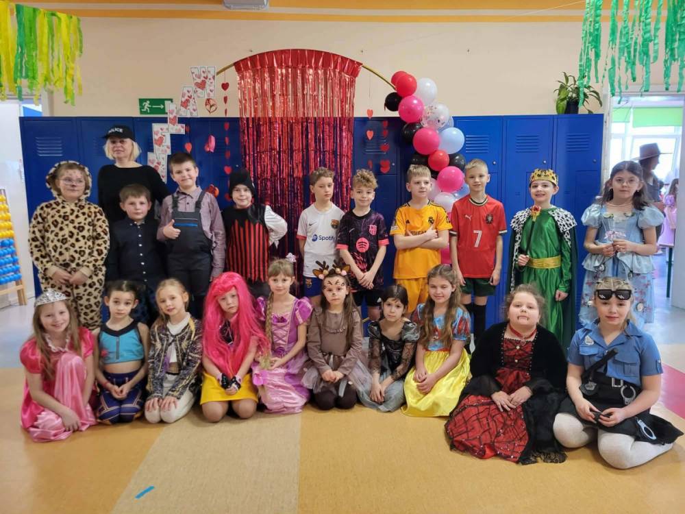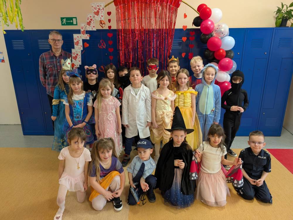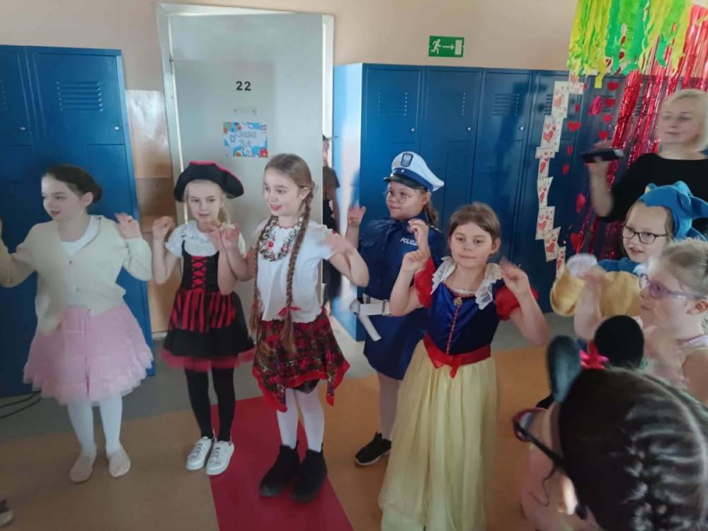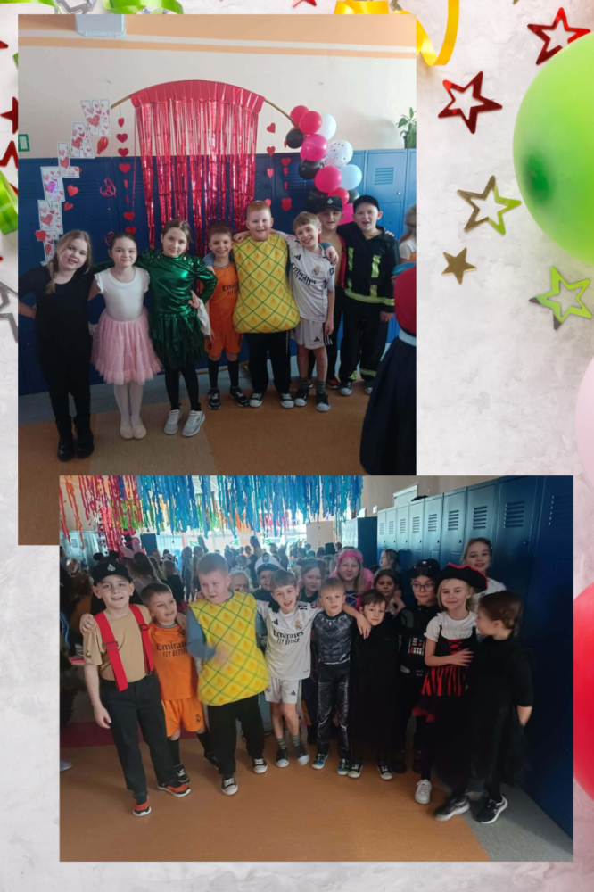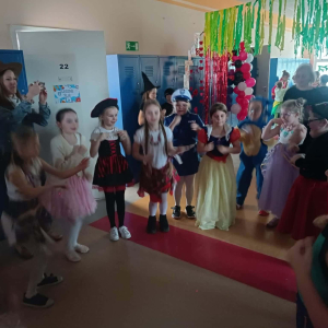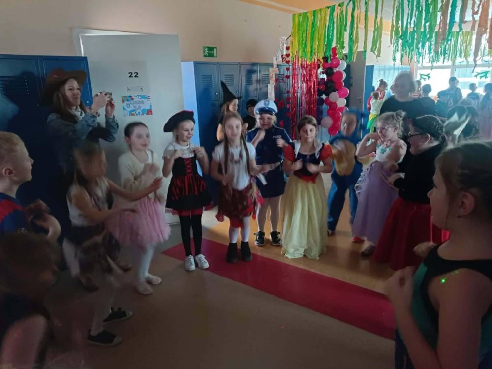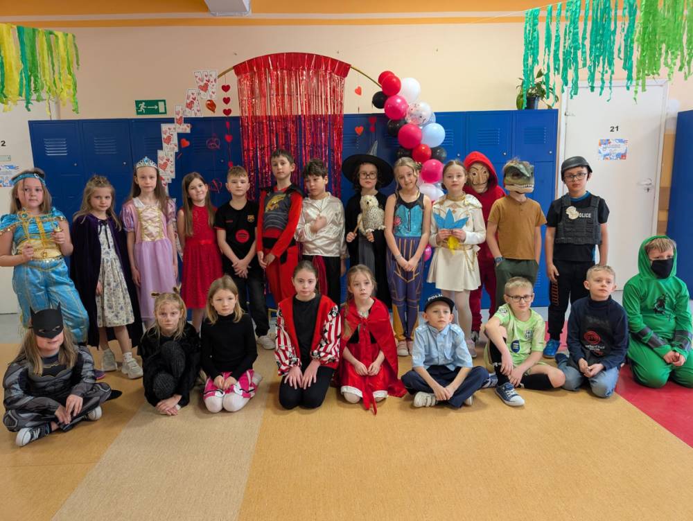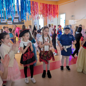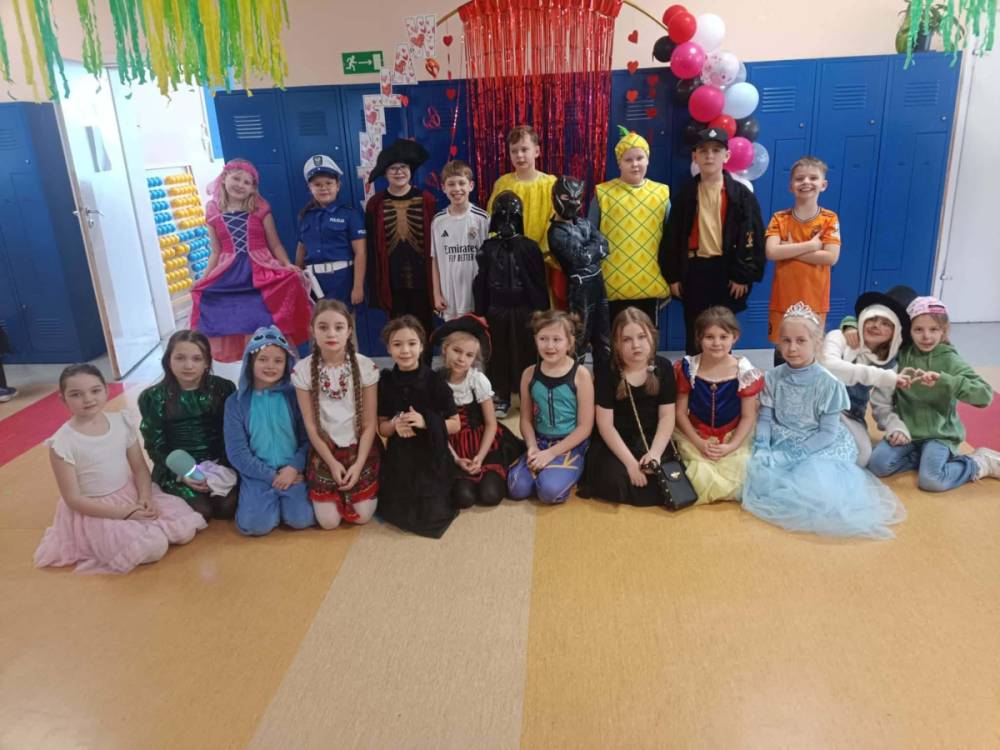 W środę 11 lutego, uczniowie klas 1–3 wzięli udział w radosnym balu karnawałowym. Tego dnia szkolne korytarze wypełniły się kolorowymi postaciami – można było spotkać przedstawicieli różnych zawodów, zwierzątka, księżniczki, piratów oraz innych bajkowych i filmowych bohaterów.