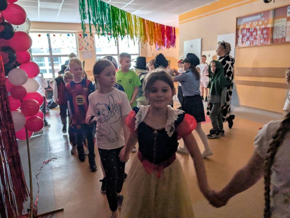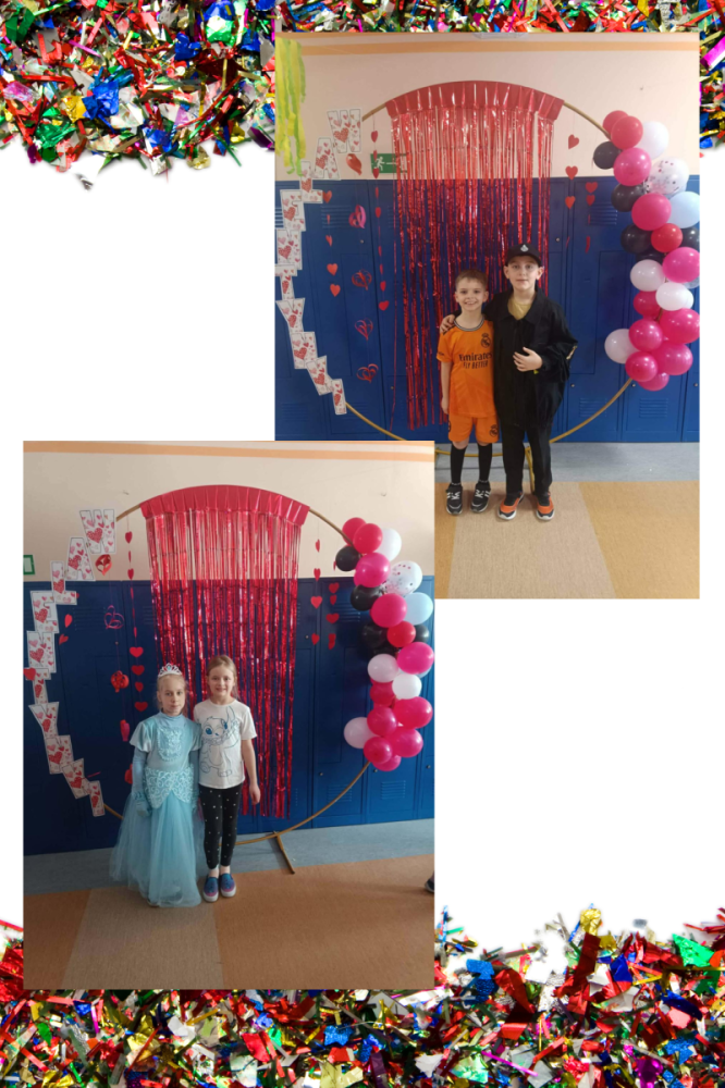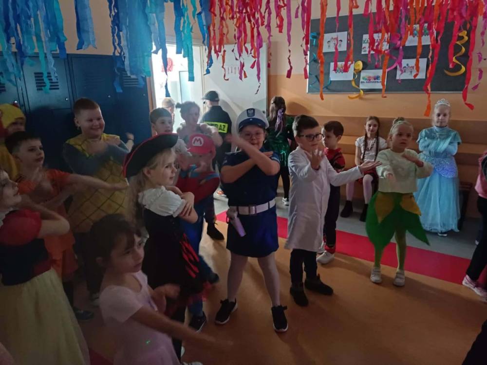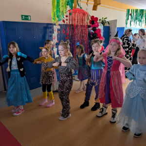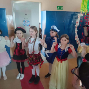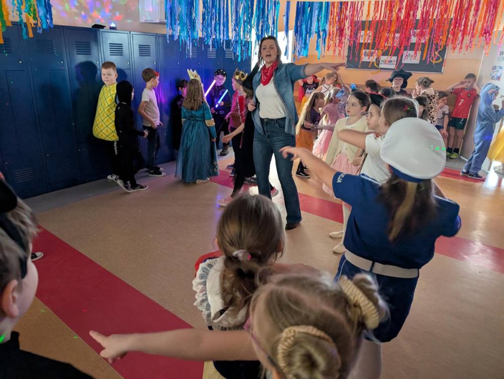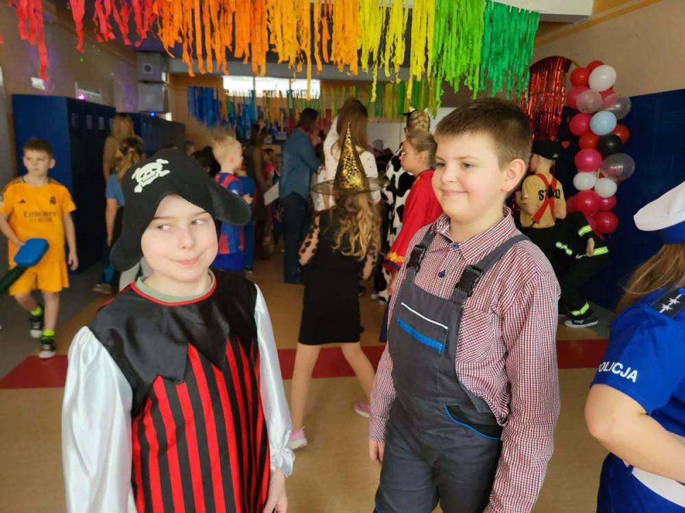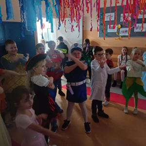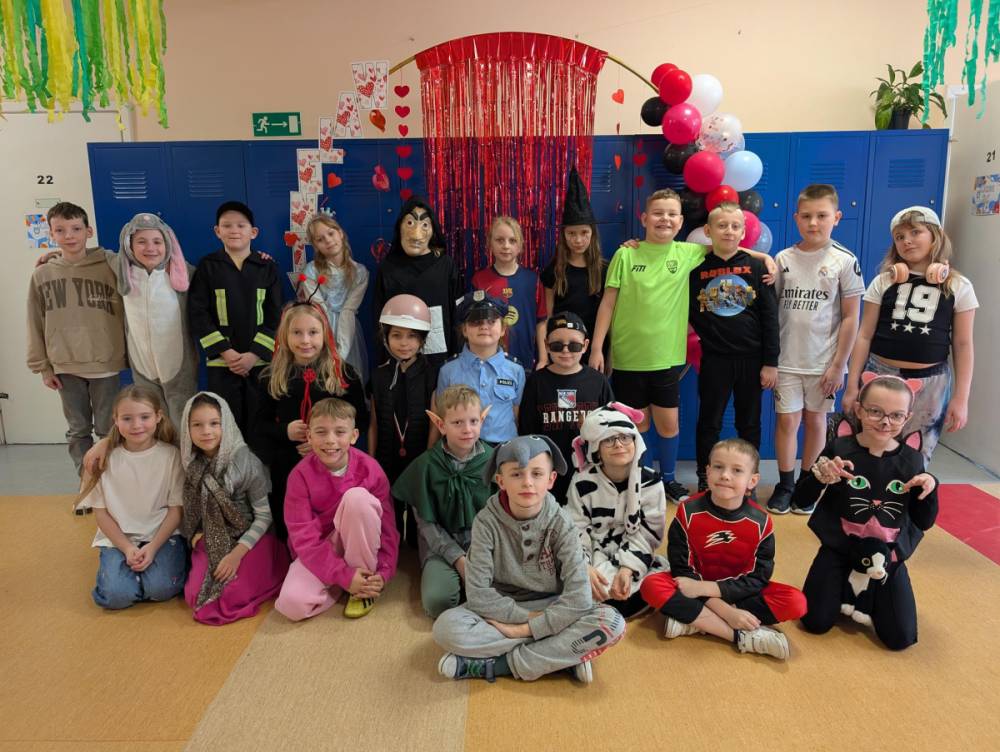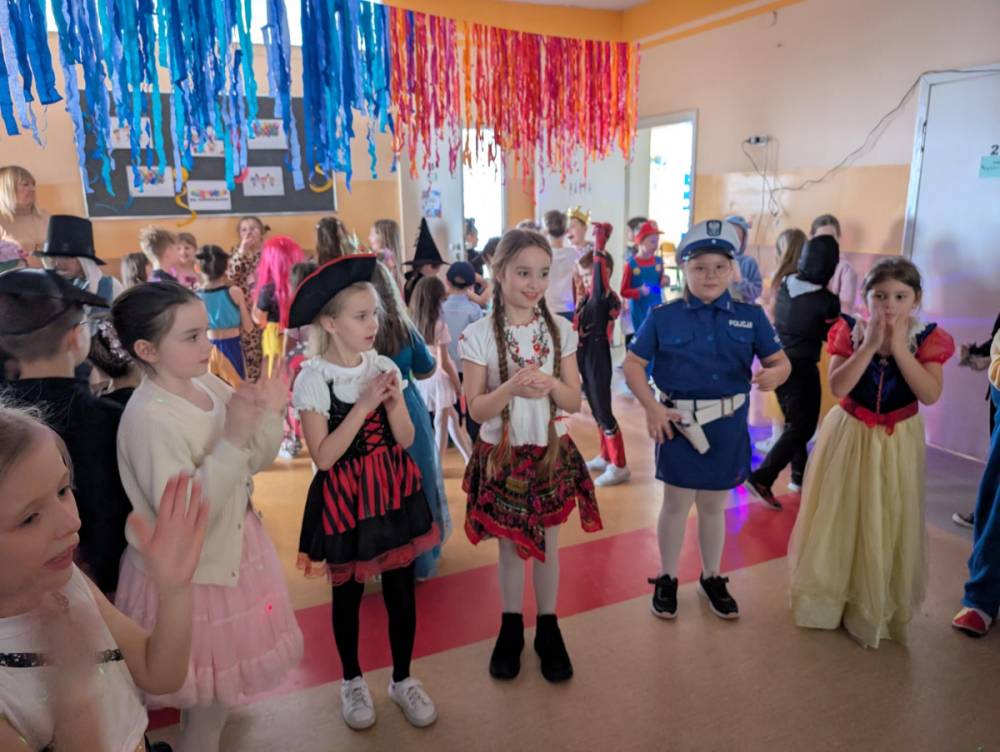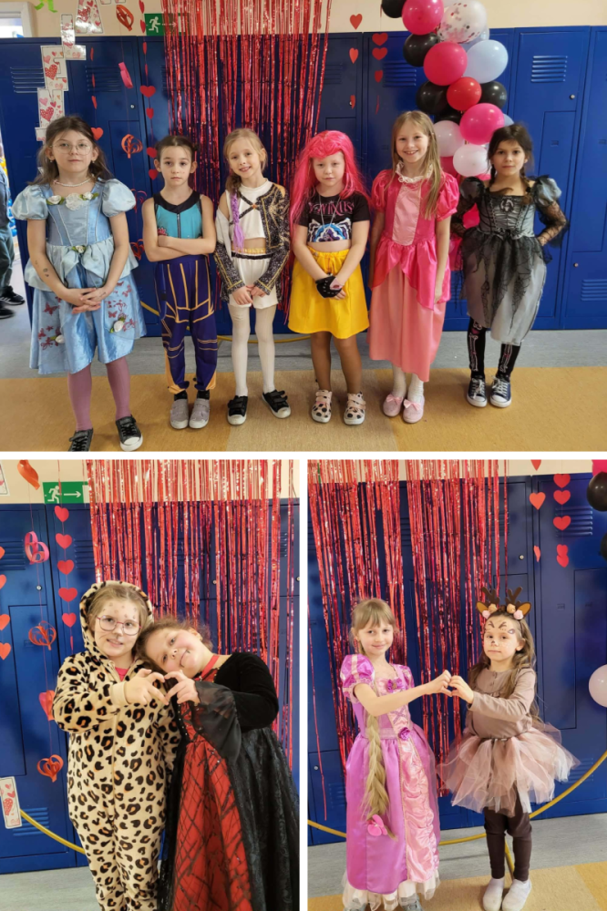 W środę 11 lutego, uczniowie klas 1–3 wzięli udział w radosnym balu karnawałowym. Tego dnia szkolne korytarze wypełniły się kolorowymi postaciami – można było spotkać przedstawicieli różnych zawodów, zwierzątka, księżniczki, piratów oraz innych bajkowych i filmowych bohaterów.