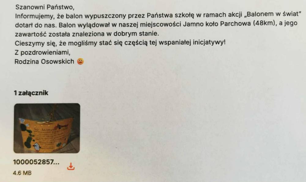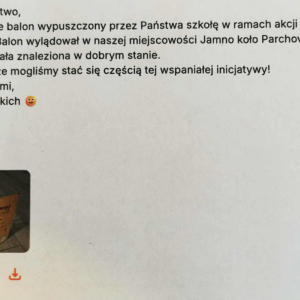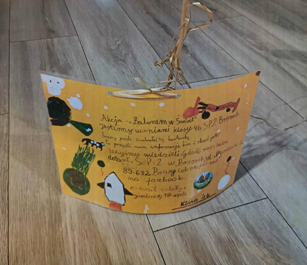 7 listopada uczniowie klasy 4b z SP2 w Brusach wzięli udział w wydarzeniu "Balonem w świat" wymyślony przez wychowawczynię klasy. Przedsięwzięcie polegało na zrobieniu przez uczniów kartek z informacjami o akcji i wysłaniu jej w świat balonem wypełnionym helem. Na kartkach podany został adres szkoły, z prośbą do osoby, która znajdzie ją, żeby napisała kiedy i gdzie balon dotarł.