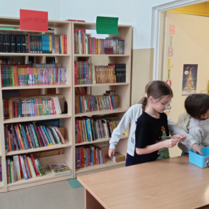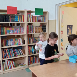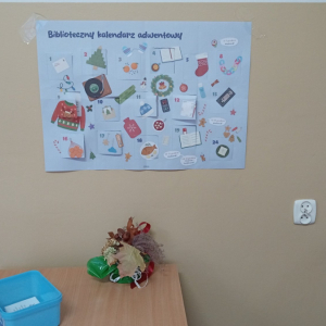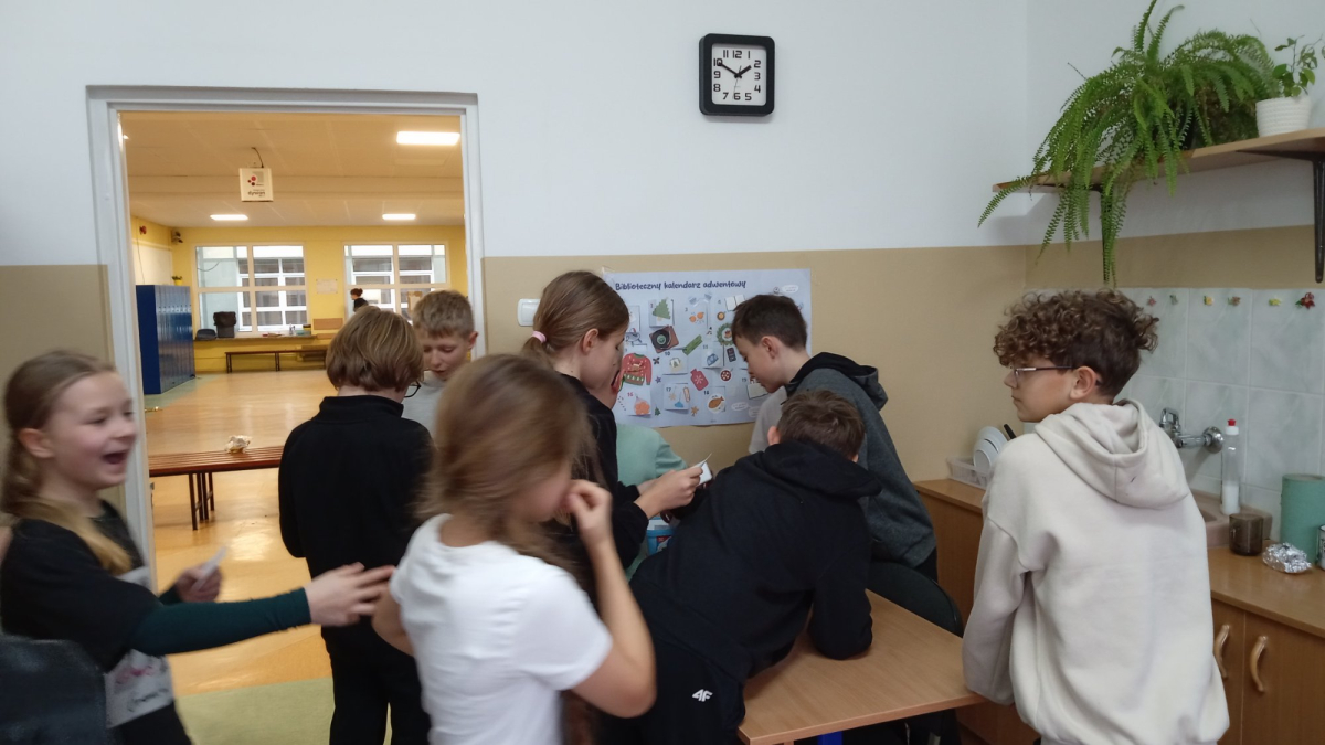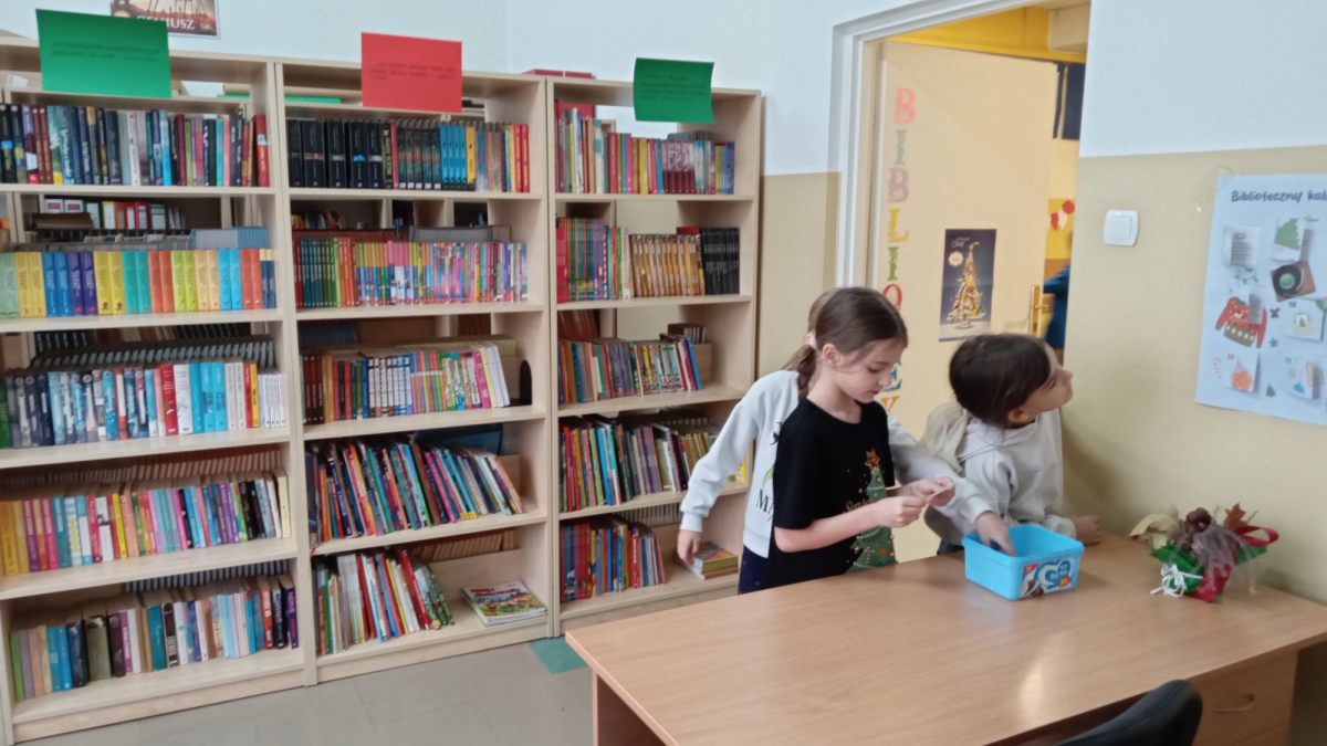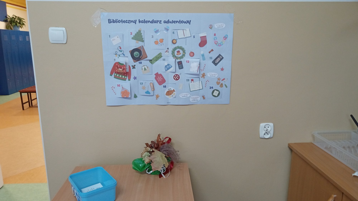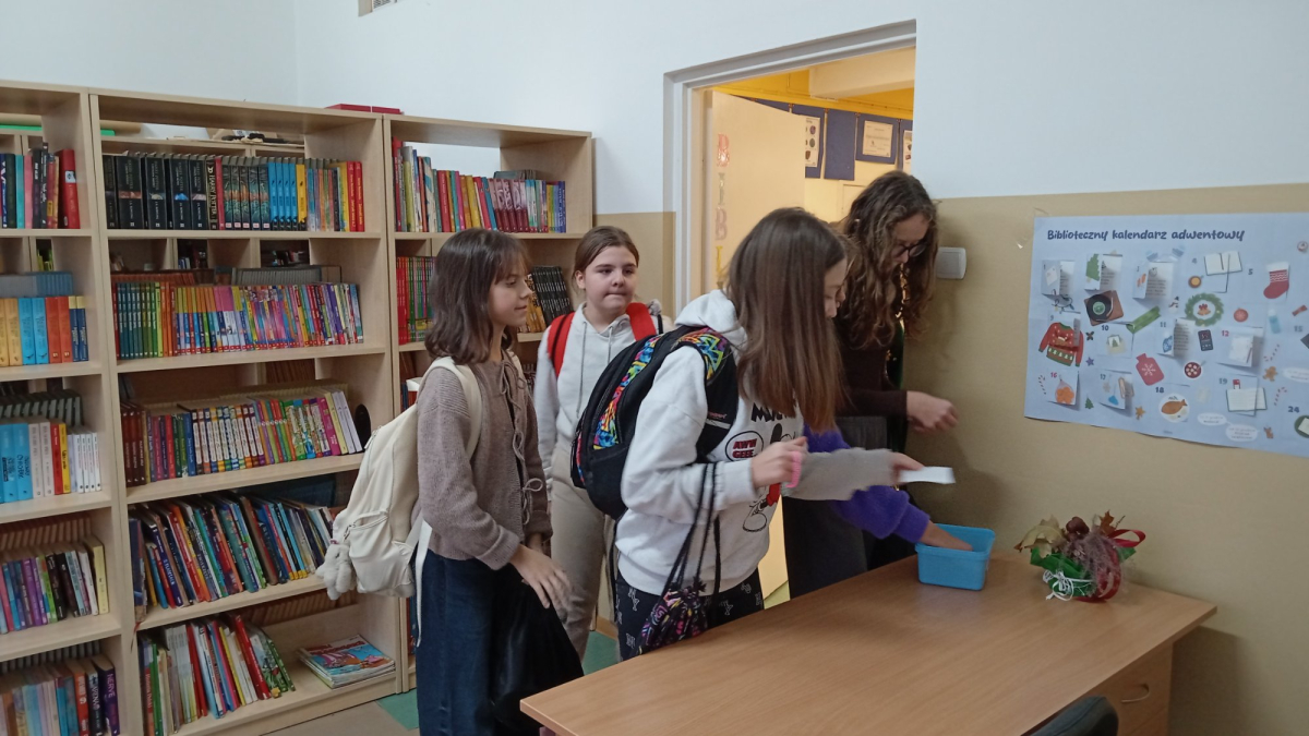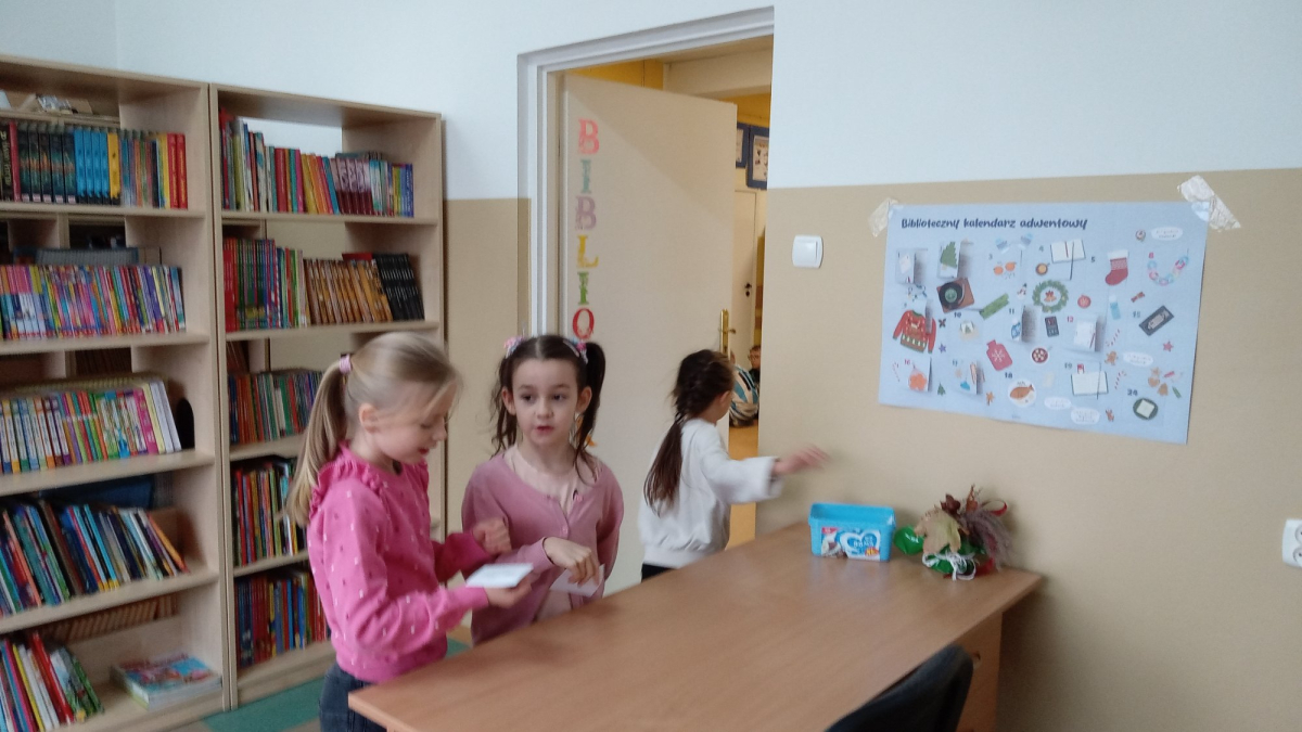Począwszy od 1 grudnia do 19 grudnia 2025 r. uczniowie klas I – III, ale także ich starsi koledzy i koleżanki z klas czwartych i piątych brali udział w akcji, którą zainicjowała biblioteka szkolna. Każdego dnia można było podejść do biblioteki i odebrać karteczkę z zadaniem na dany dzień. Zadania nie były związane tylko z czytaniem książek, ale miały na celu zachęcenie uczniów do różnych aktywności np. plastycznych, manualnych, językowych, wokalnych i kulinarnych. Bywały dni, że dzieci czekały z niecierpliwością na kolejne zadanie, ale czasami bibliotekarka musiała wyjść do nich i „poczęstować” karteczką z zadaniem.