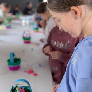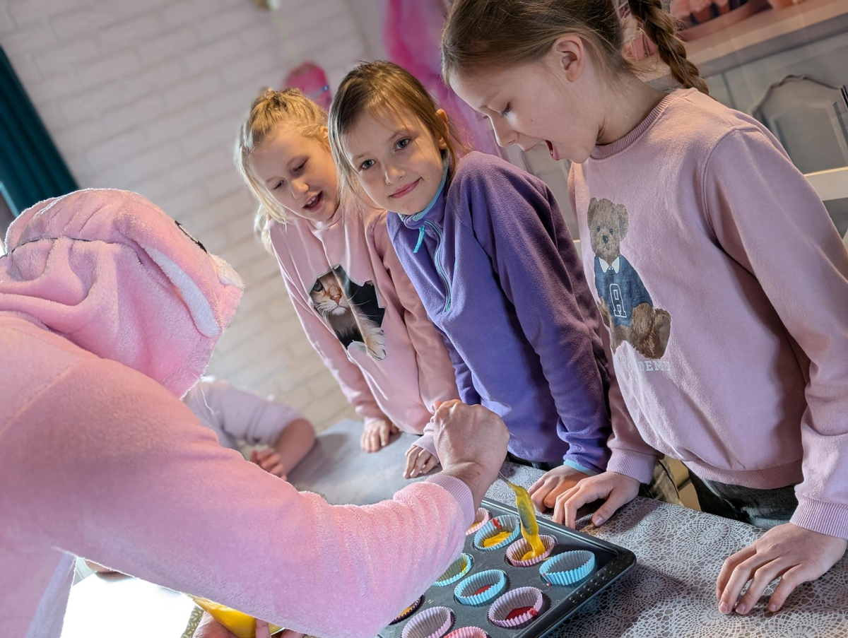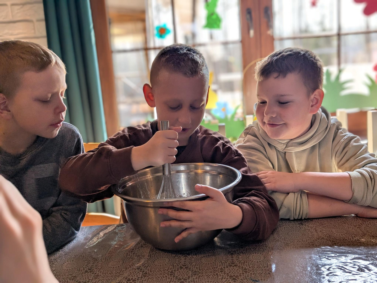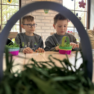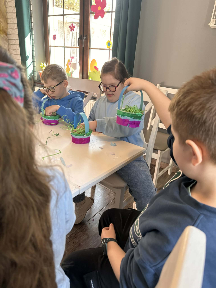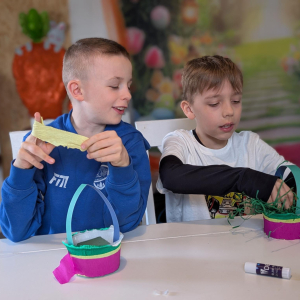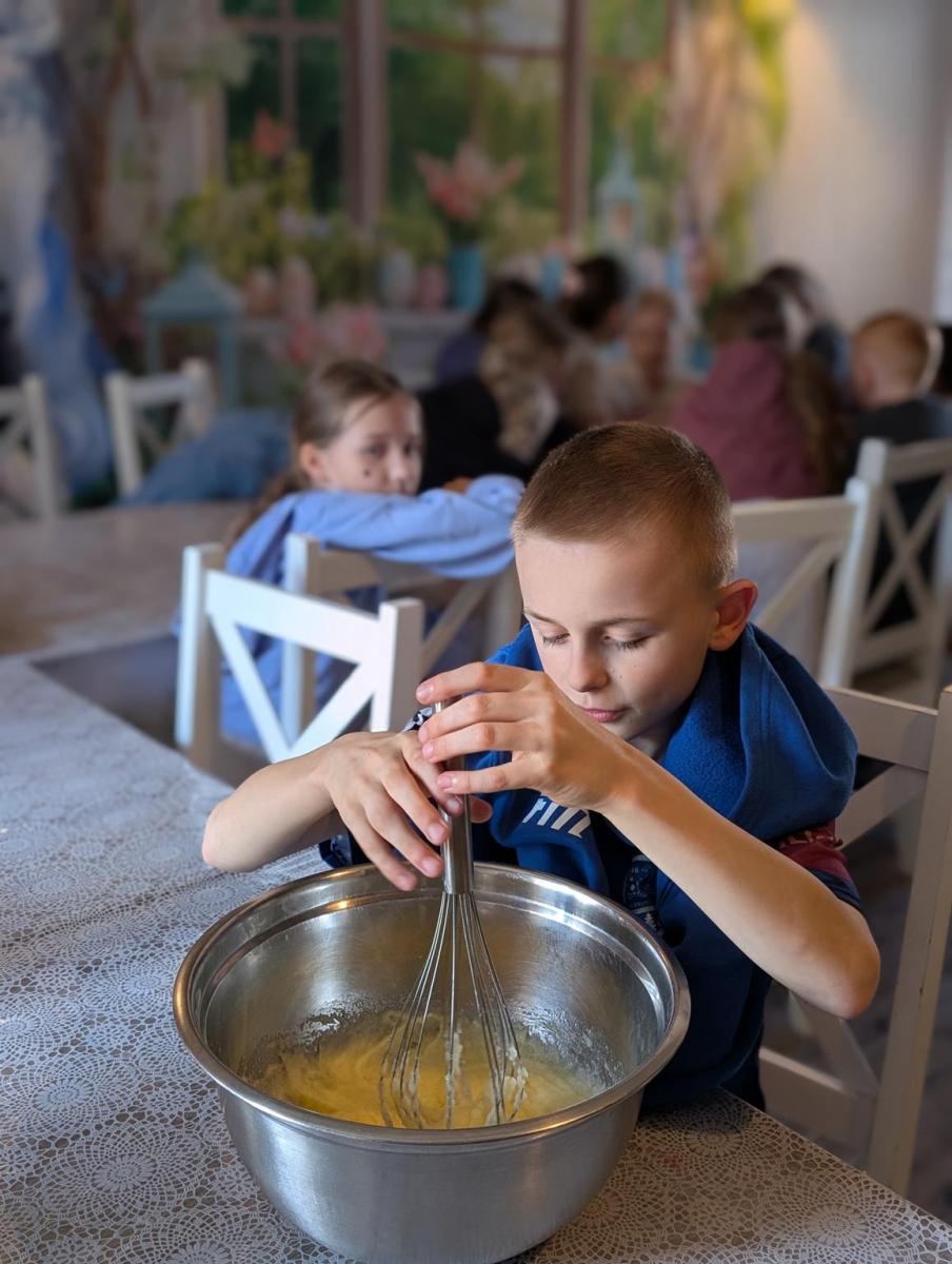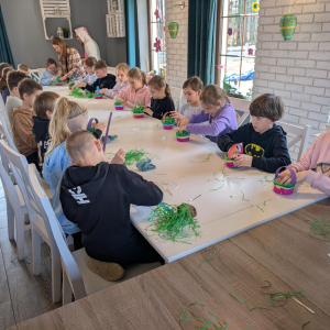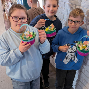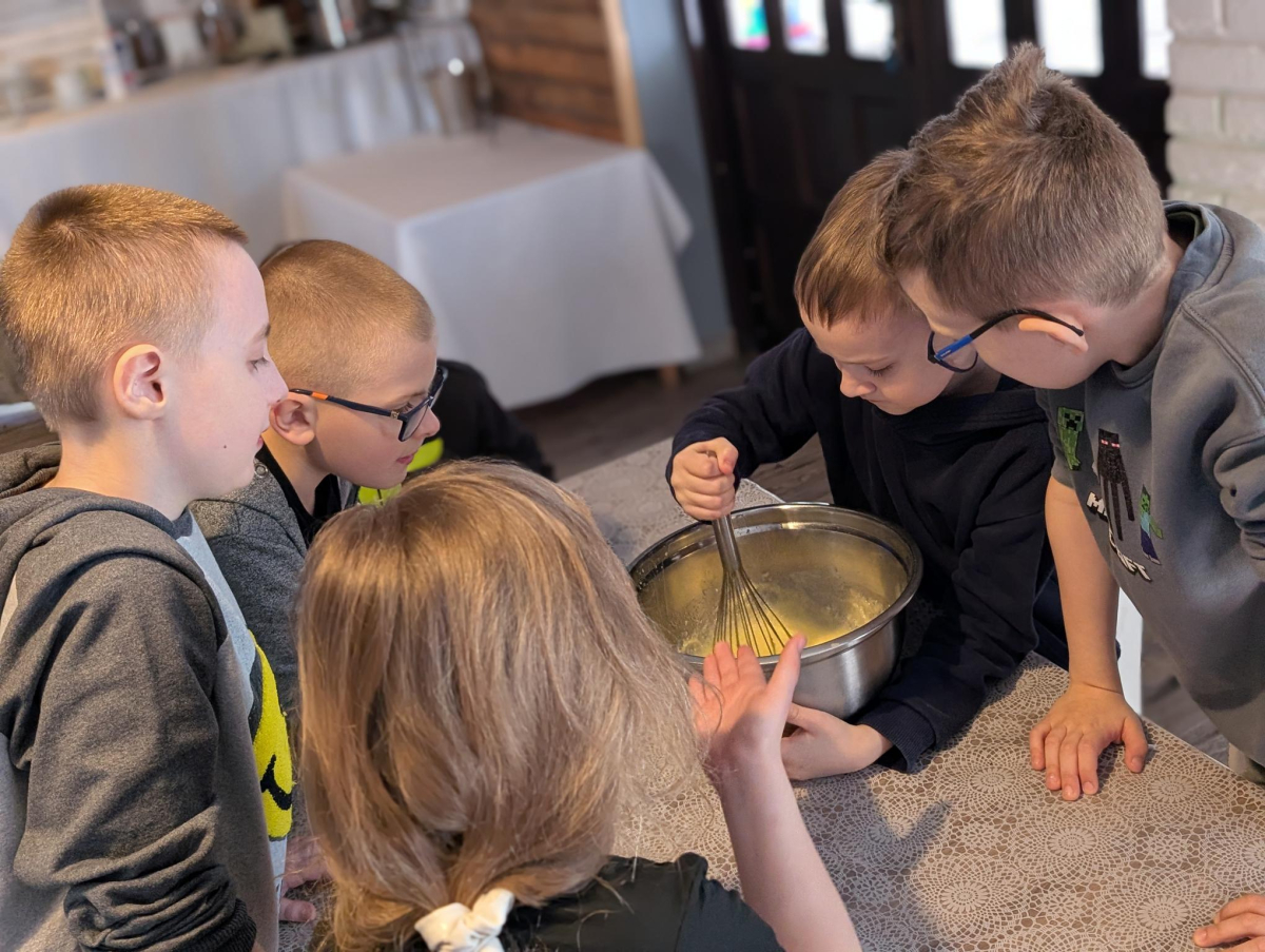 Na uczestników wycieczki czekało mnóstwo atrakcji – pieczenie babeczek, własnoręczne tworzenie koszyków wielkanocnych, a także gry i zabawy na świeżym powietrzu. Uczniowie uczestniczyli również w zabawie terenowej, rozwiązując wielkanocne zagadki oraz tańczyli z wielkanocnym zajączkiem.