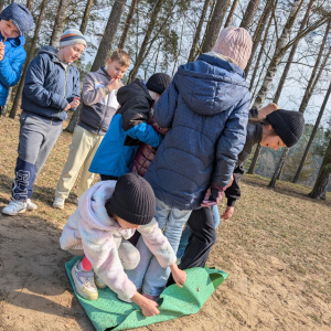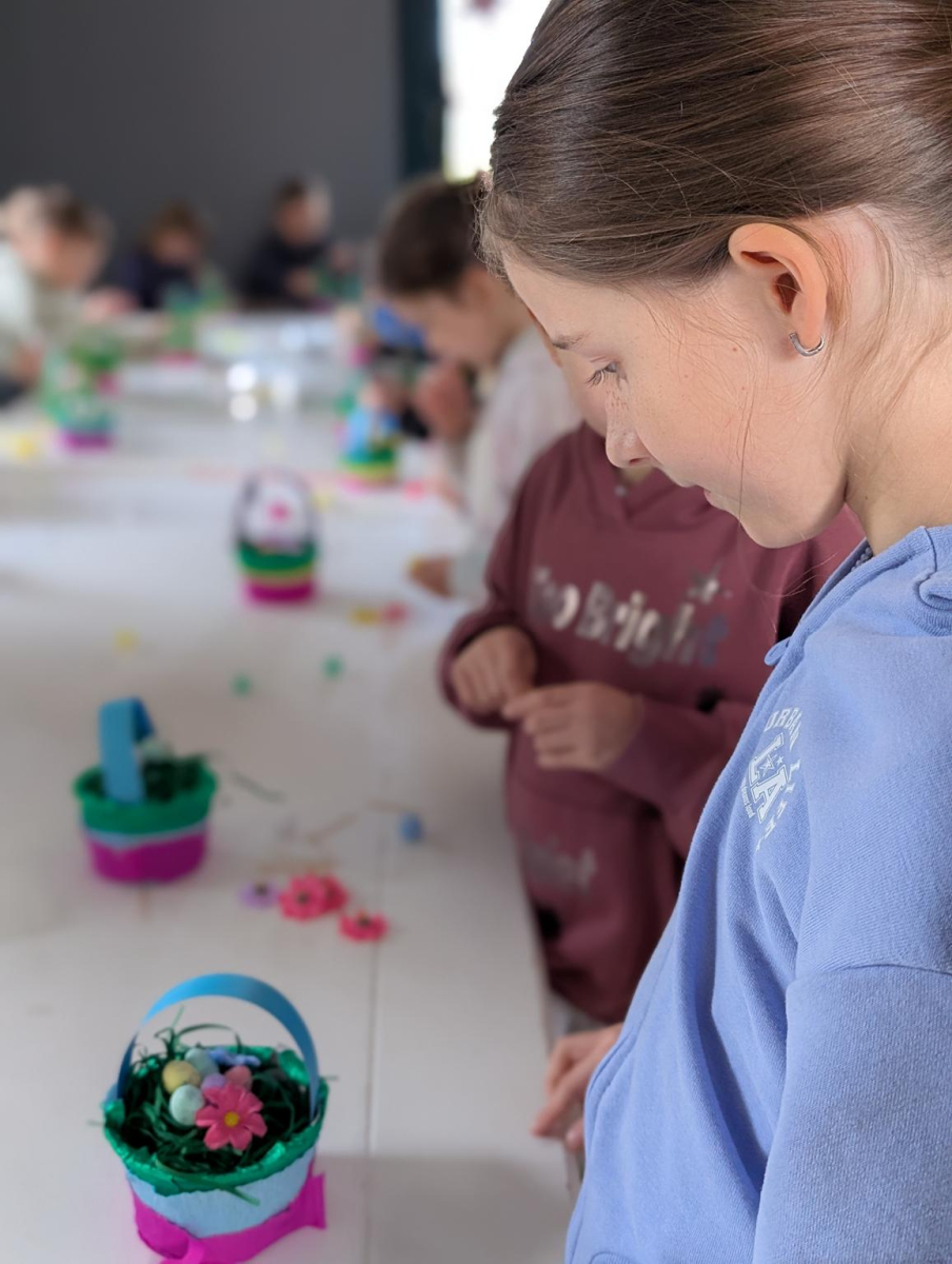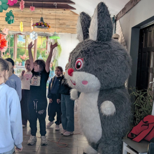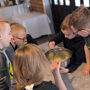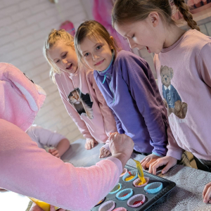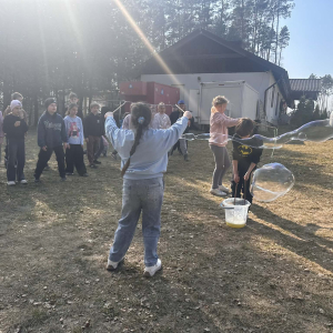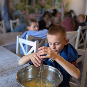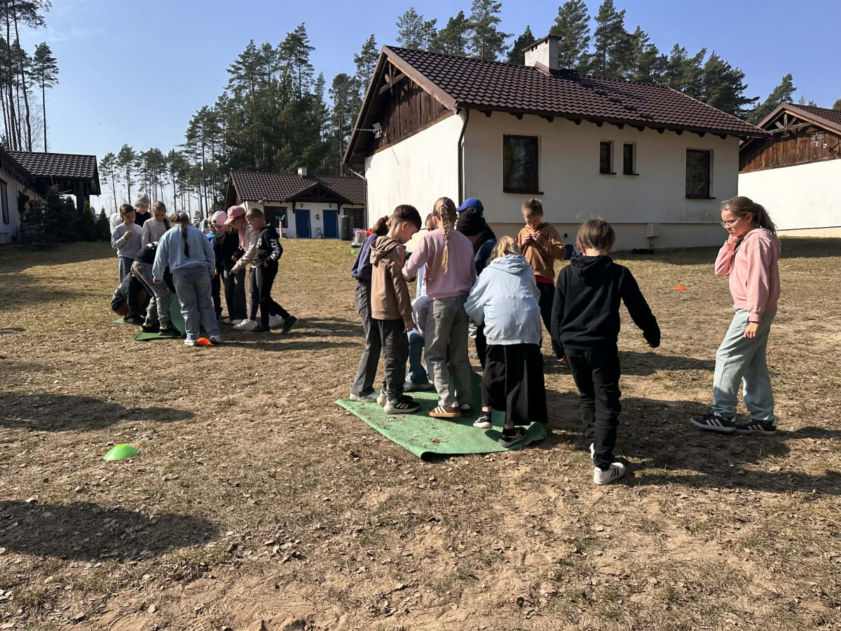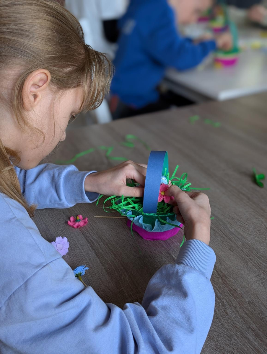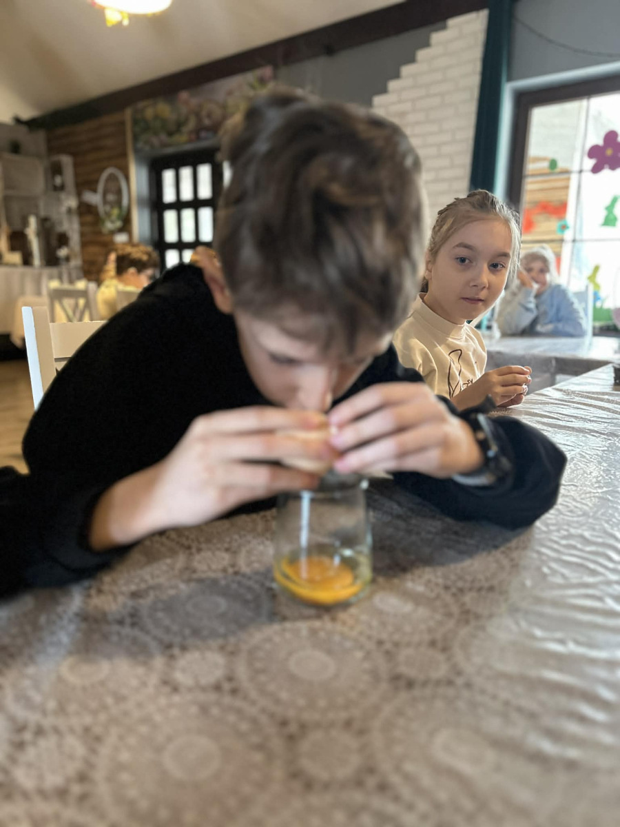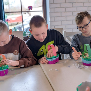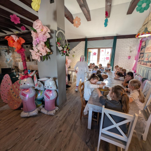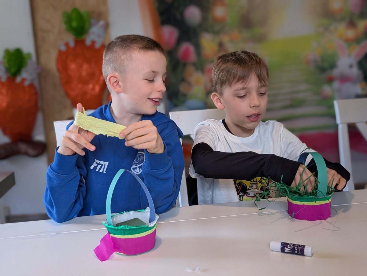 Na uczestników wycieczki czekało mnóstwo atrakcji – pieczenie babeczek, własnoręczne tworzenie koszyków wielkanocnych, a także gry i zabawy na świeżym powietrzu. Uczniowie uczestniczyli również w zabawie terenowej, rozwiązując wielkanocne zagadki oraz tańczyli z wielkanocnym zajączkiem.