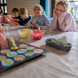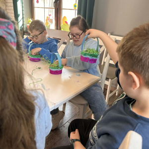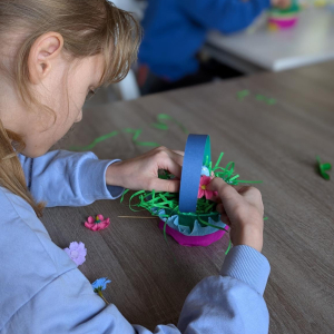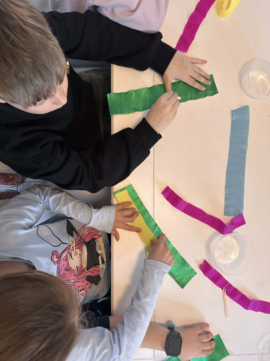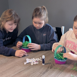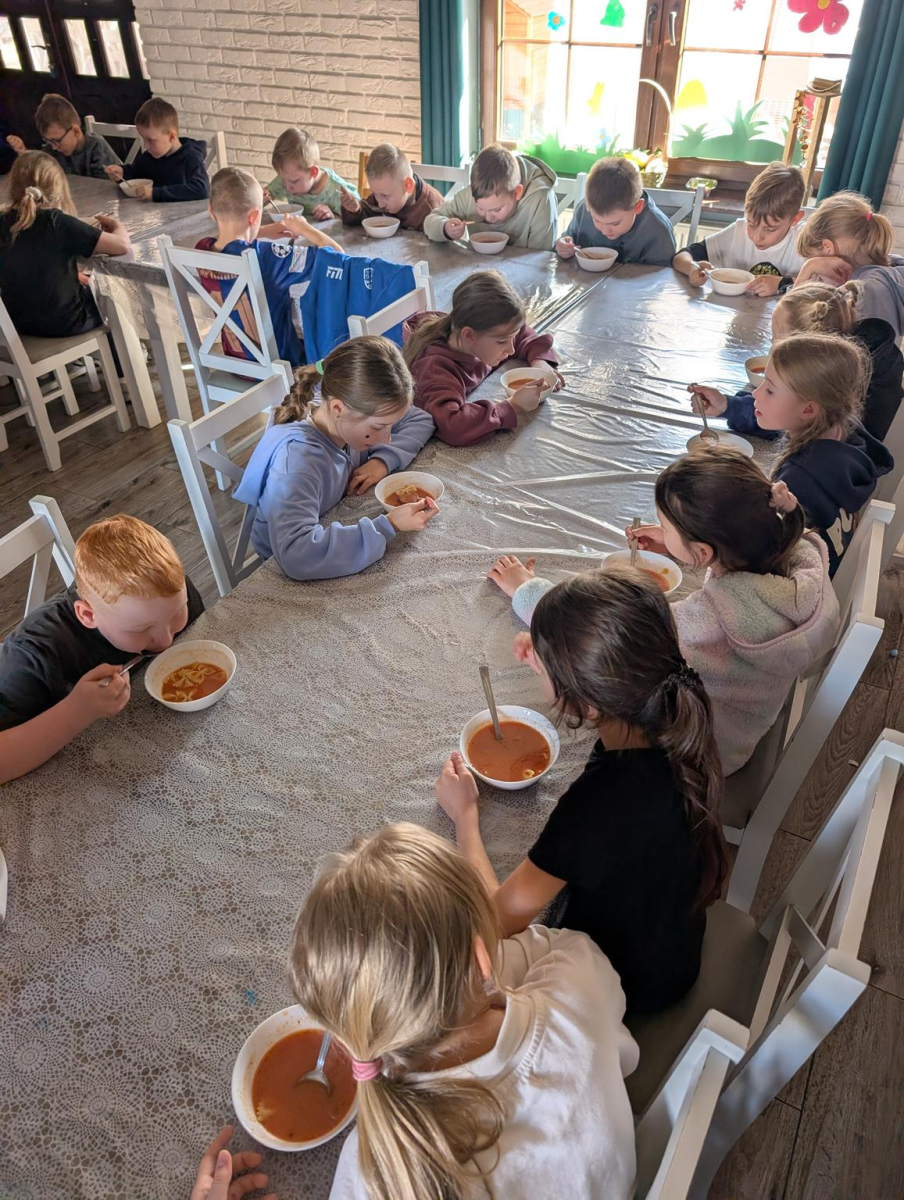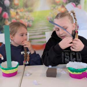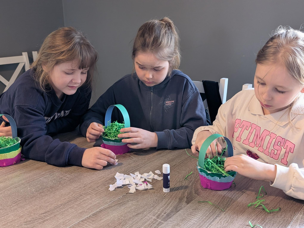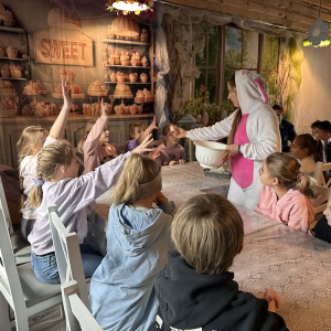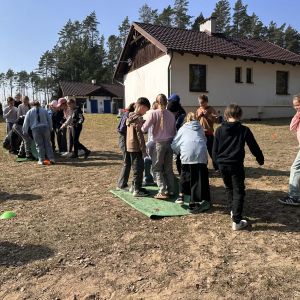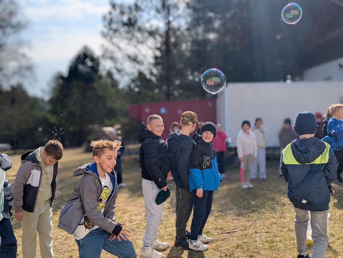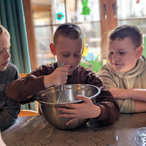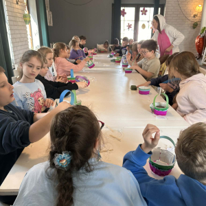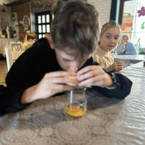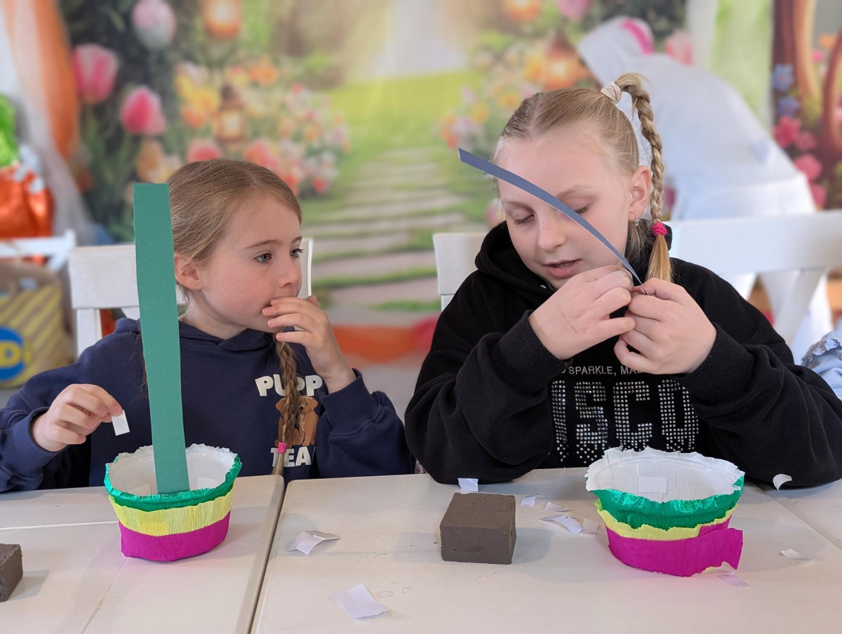 Na uczestników wycieczki czekało mnóstwo atrakcji – pieczenie babeczek, własnoręczne tworzenie koszyków wielkanocnych, a także gry i zabawy na świeżym powietrzu. Uczniowie uczestniczyli również w zabawie terenowej, rozwiązując wielkanocne zagadki oraz tańczyli z wielkanocnym zajączkiem.