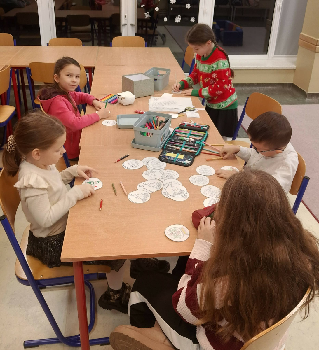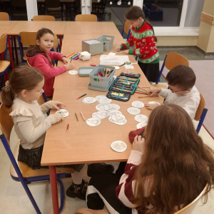 Ostatniego dnia przed świętami szkolna świetlica zamieniła się w prawdziwą pracownię elfów. Dzieci z ogromnym zaangażowaniem i radością przygotowywały „dobre słowa” – pełne życzliwości, uśmiechu i ciepła myśli, którymi później dzieliły się z innymi w szkole.