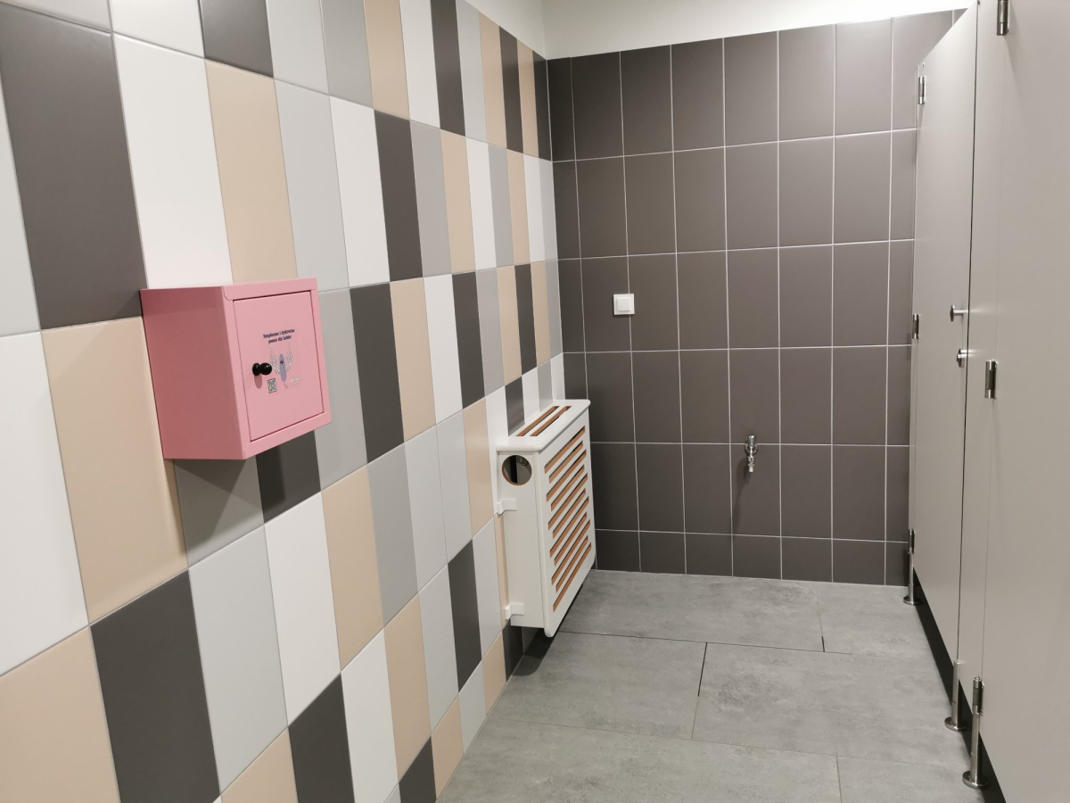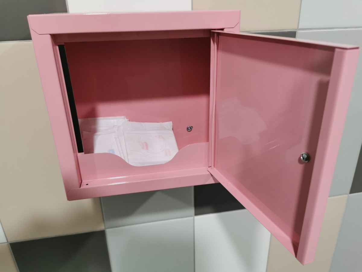 W łazienkach dla dziewcząt pojawiły się skrzyneczki wypełnione materiałami higieny intymnej, z których mogą korzystać wszystkie potrzebujące – zarówno młodsze, jak i starsze uczennice.