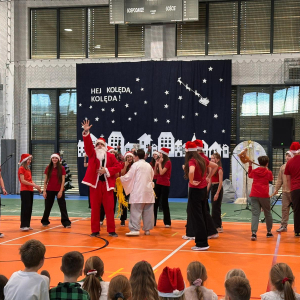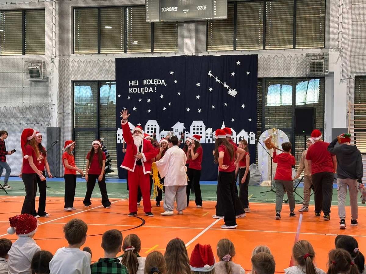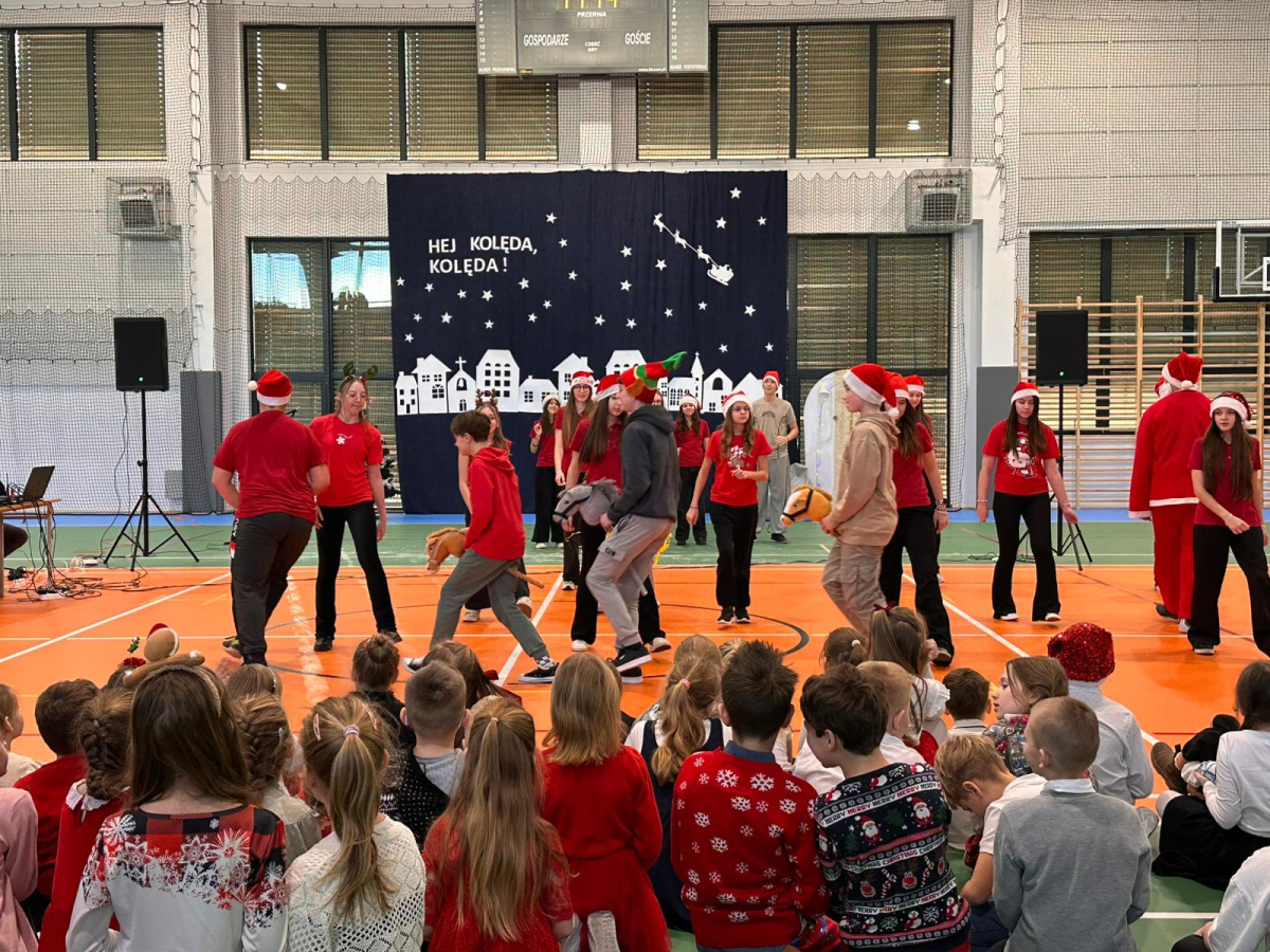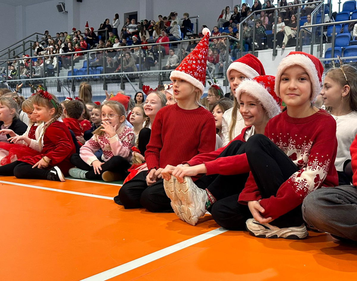 Każda z klas miała okazję zaprezentować świąteczną piosenkę, tworząc radosną i pełną ciepła atmosferę. Nie zabrakło także tanecznych występów, które wprowadziły wszystkich w prawdziwie świąteczny nastrój Dziękujemy za Wasze zaangażowanie, kreatywność i poczucie humoru!
