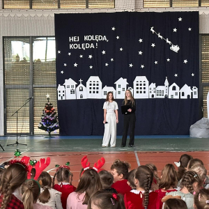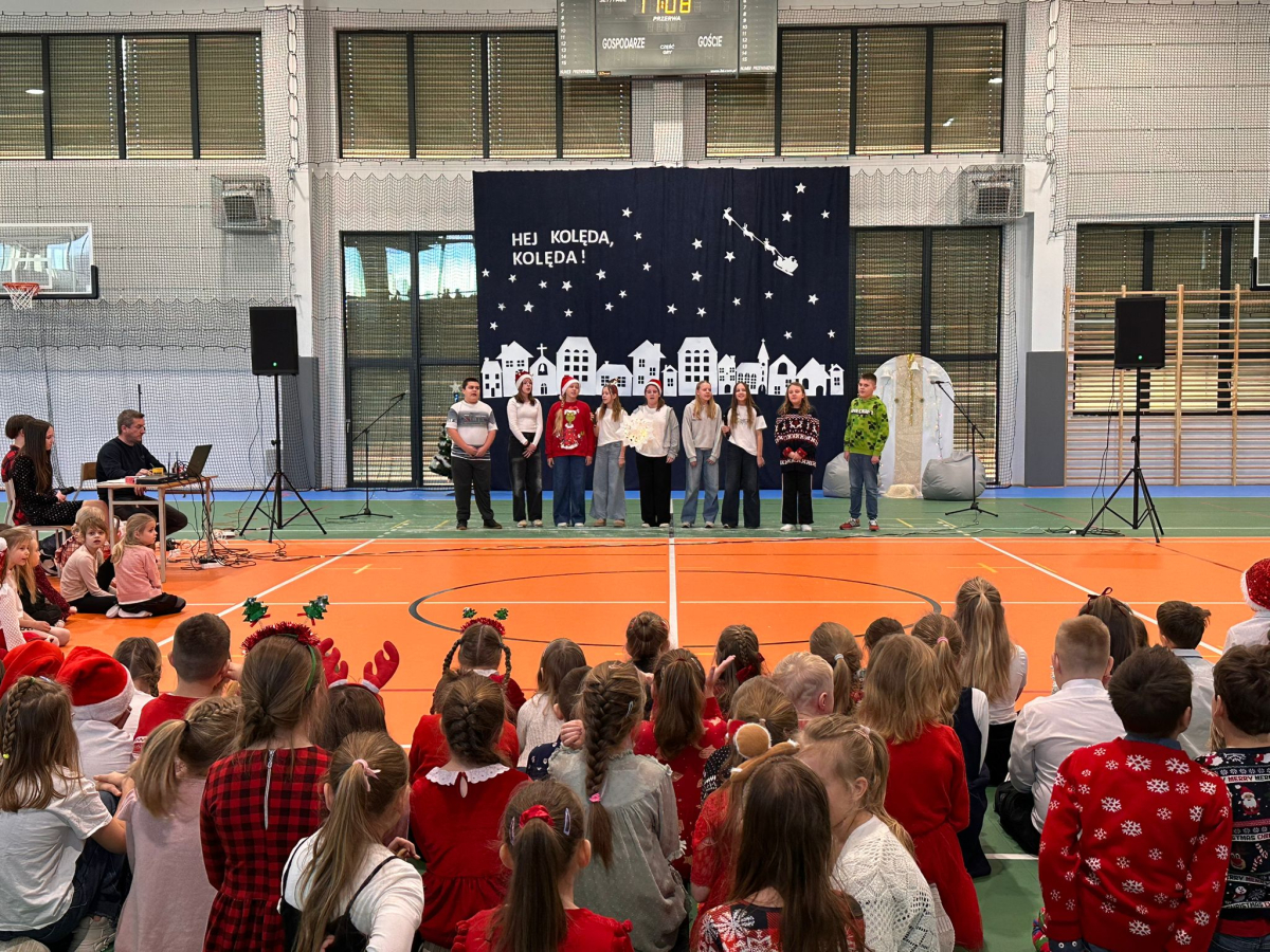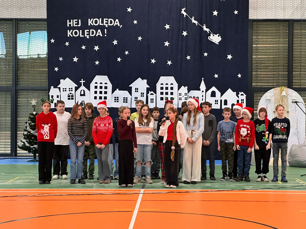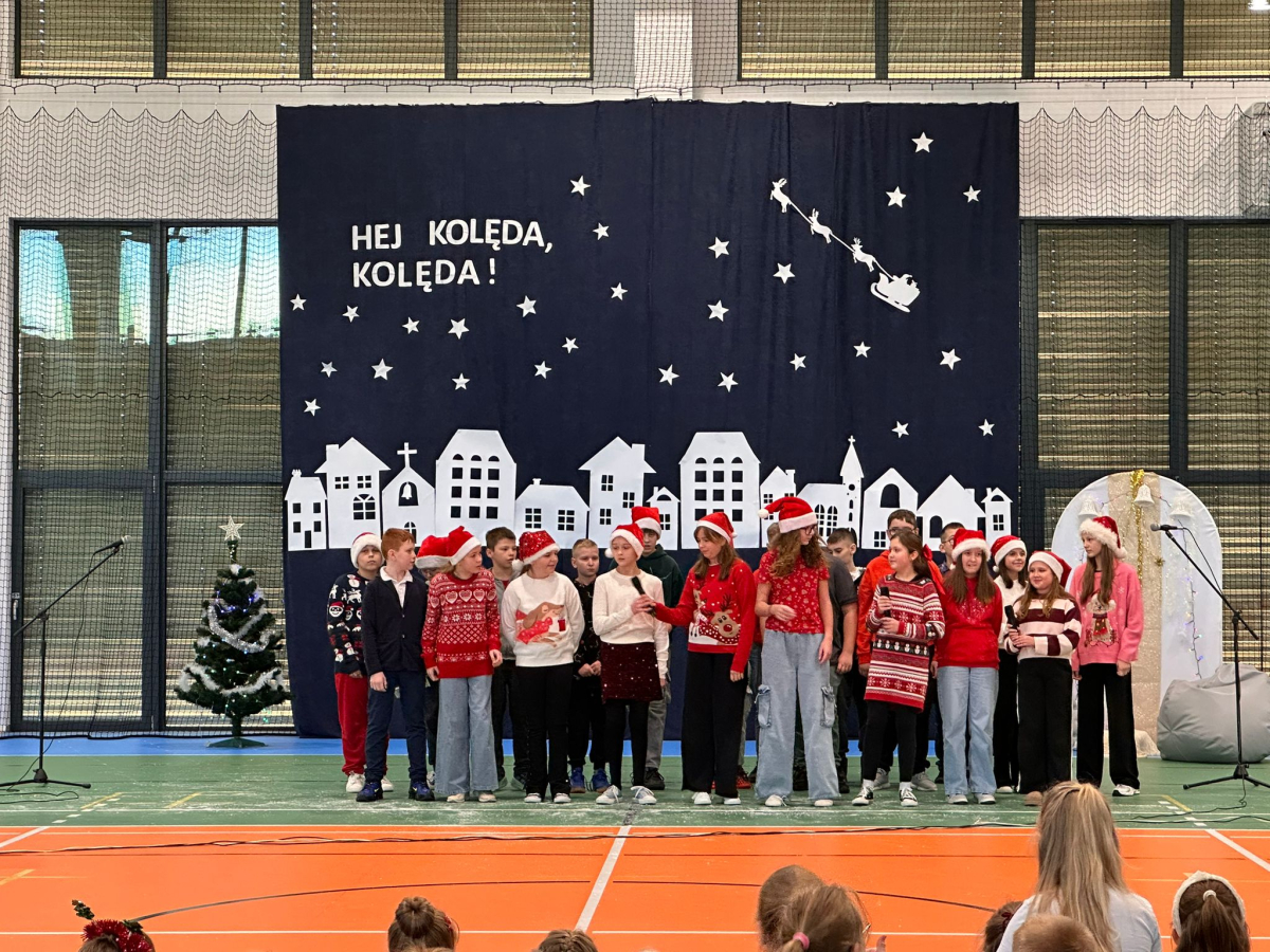 Każda z klas miała okazję zaprezentować świąteczną piosenkę, tworząc radosną i pełną ciepła atmosferę. Nie zabrakło także tanecznych występów, które wprowadziły wszystkich w prawdziwie świąteczny nastrój Dziękujemy za Wasze zaangażowanie, kreatywność i poczucie humoru!