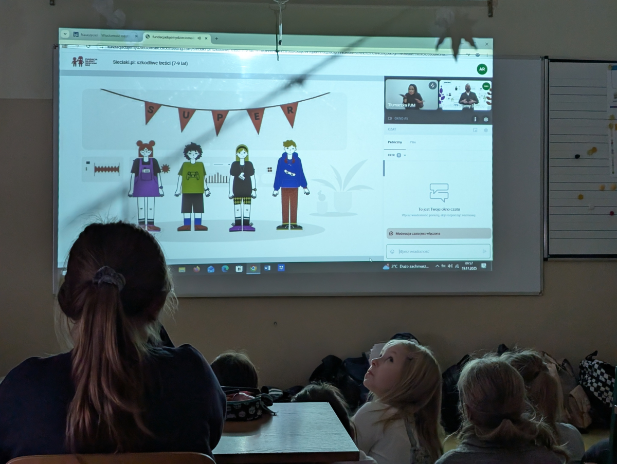 19 listopada nasze klasy 2b i 3a uczestniczyły w zajęciach organizowanych przez Fundację Dajemy Dzieciom Siłę. Tematem spotkania były „Sieciaki – szkodliwe treści”, podczas którego dzieci uczyły się, jak bezpiecznie korzystać z internetu i jak reagować, gdy natrafią na nieodpowiednie treści.