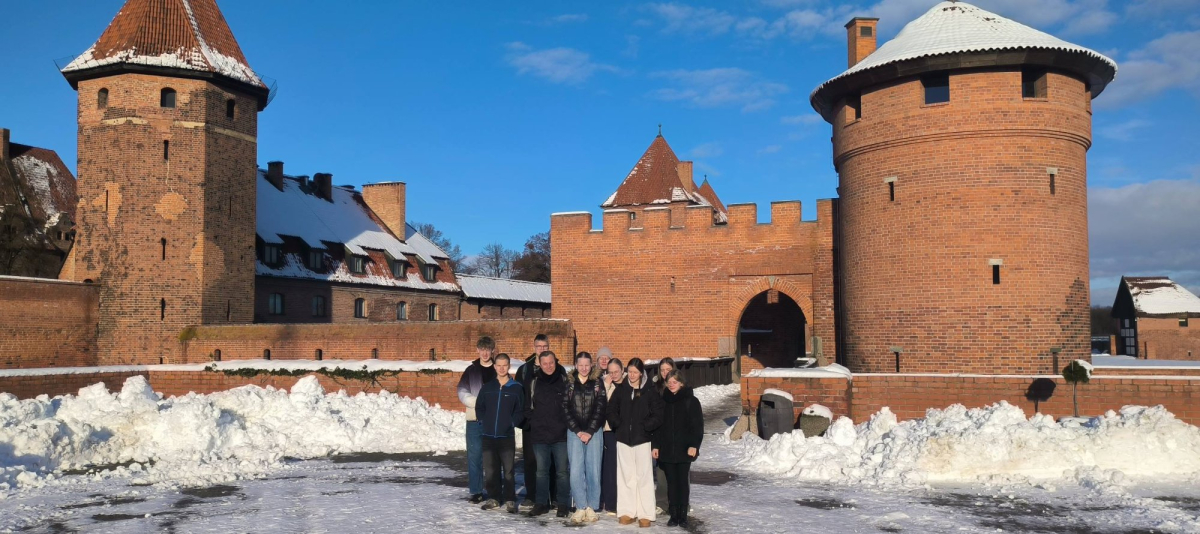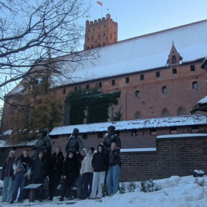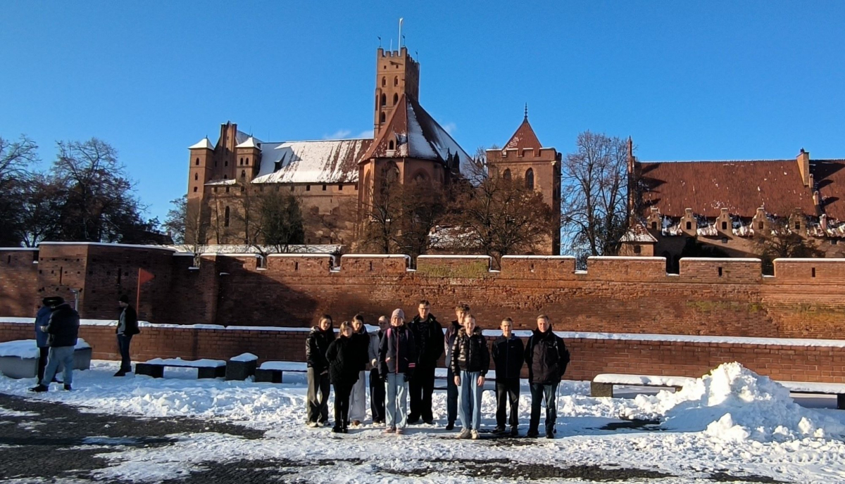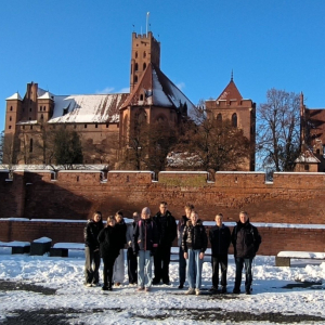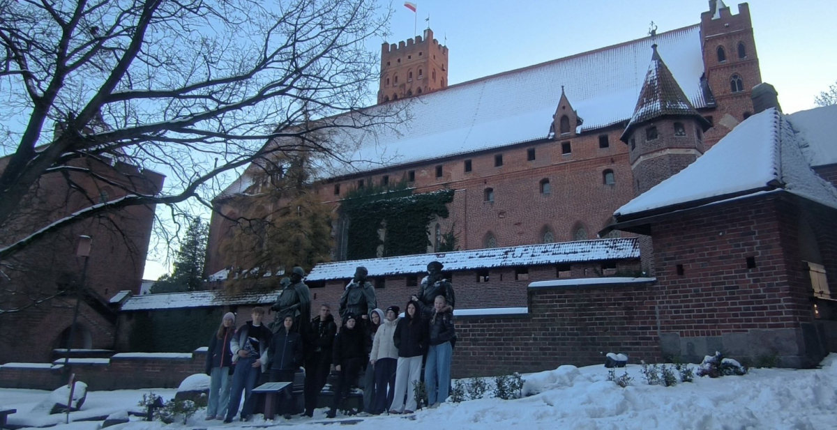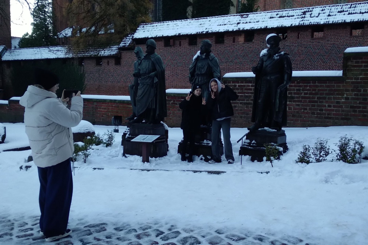 Tym razem grupka ósmoklasistów wyruszyła w podróż wczesnym rankiem 27 listopada, pod opieką p. Kacpra Drobińskiego i p. Grzegorza Schramke. Ku zdumieniu wszystkich już w Czersku napotkano pierwszą warstewkę śniegu, a w miarę upływu kilometrów białego puchu pokrywającego okolicę było coraz więcej (w Brusach zaś tego dnia panowała iście wiosenna aura).