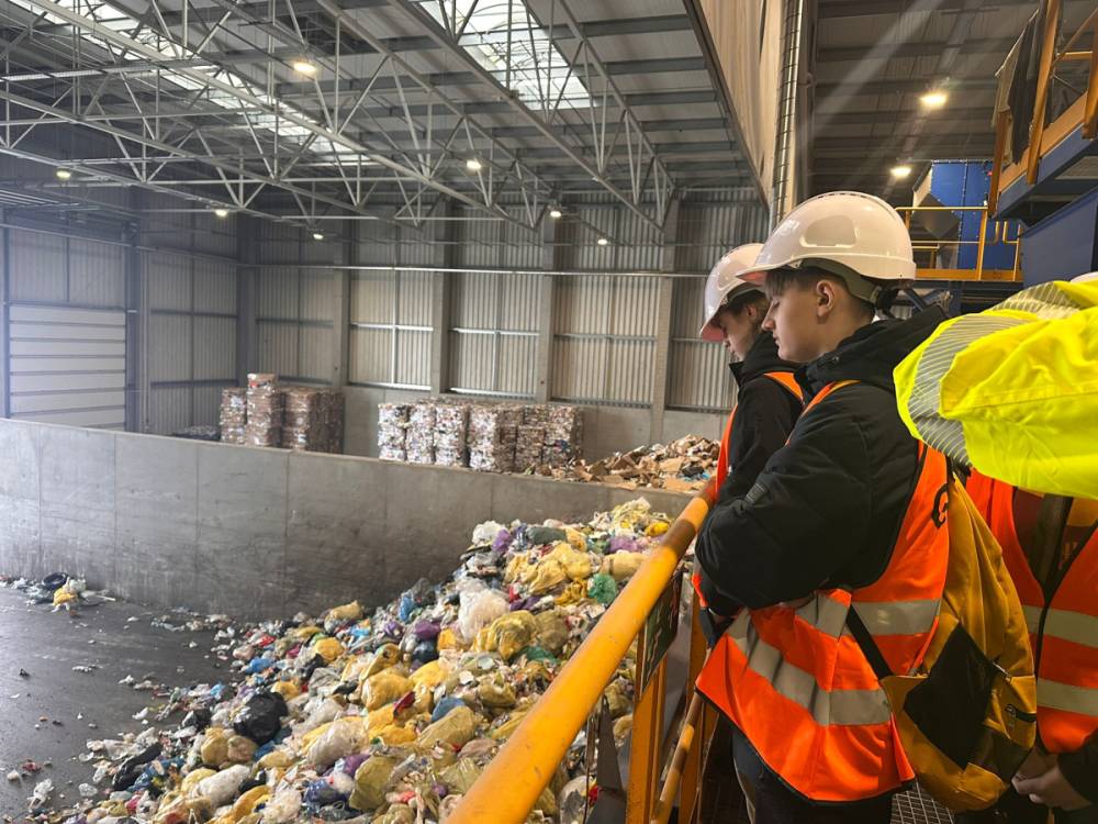 Podczas zwiedzania zakładu ósmoklasiści zobaczyli kolejne etapy sortowania odpadów pochodzących z żółtego kontenera – od momentu dostarczenia surowców, przez proces segregacji, aż po przygotowanie ich do dalszego przetworzenia. Przekonaliśmy się w praktyce jak duże znaczenie ma prawidłowa segregacja odpadów już na etapie domowym.