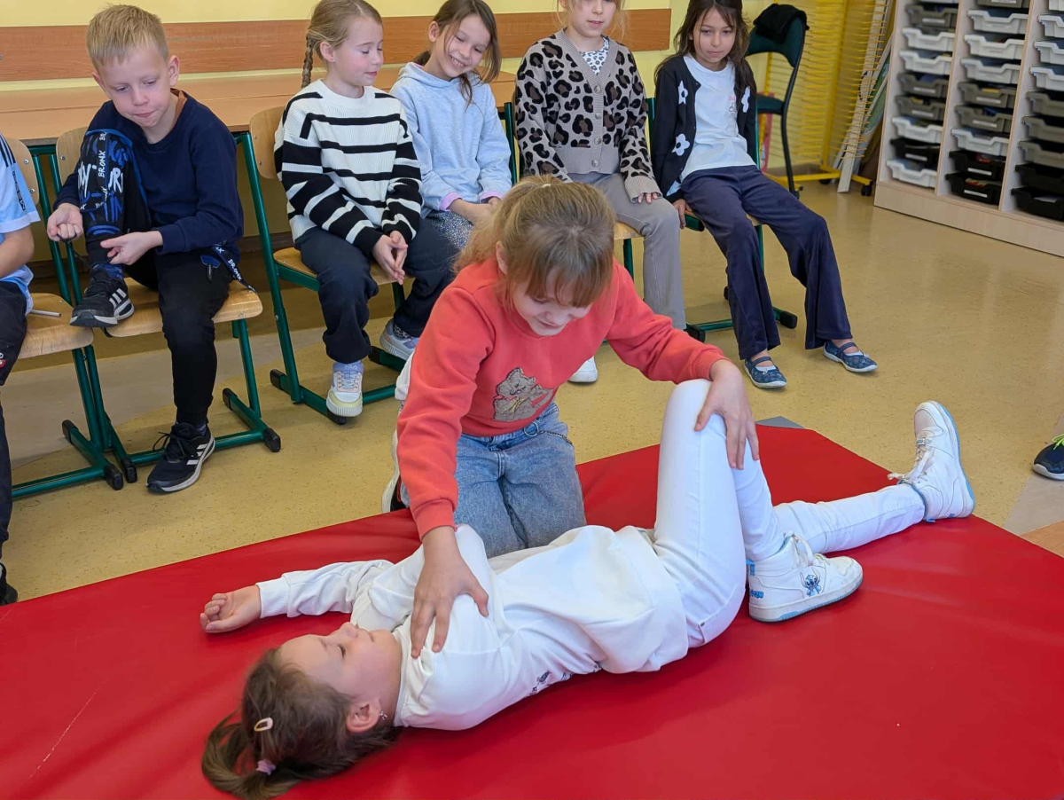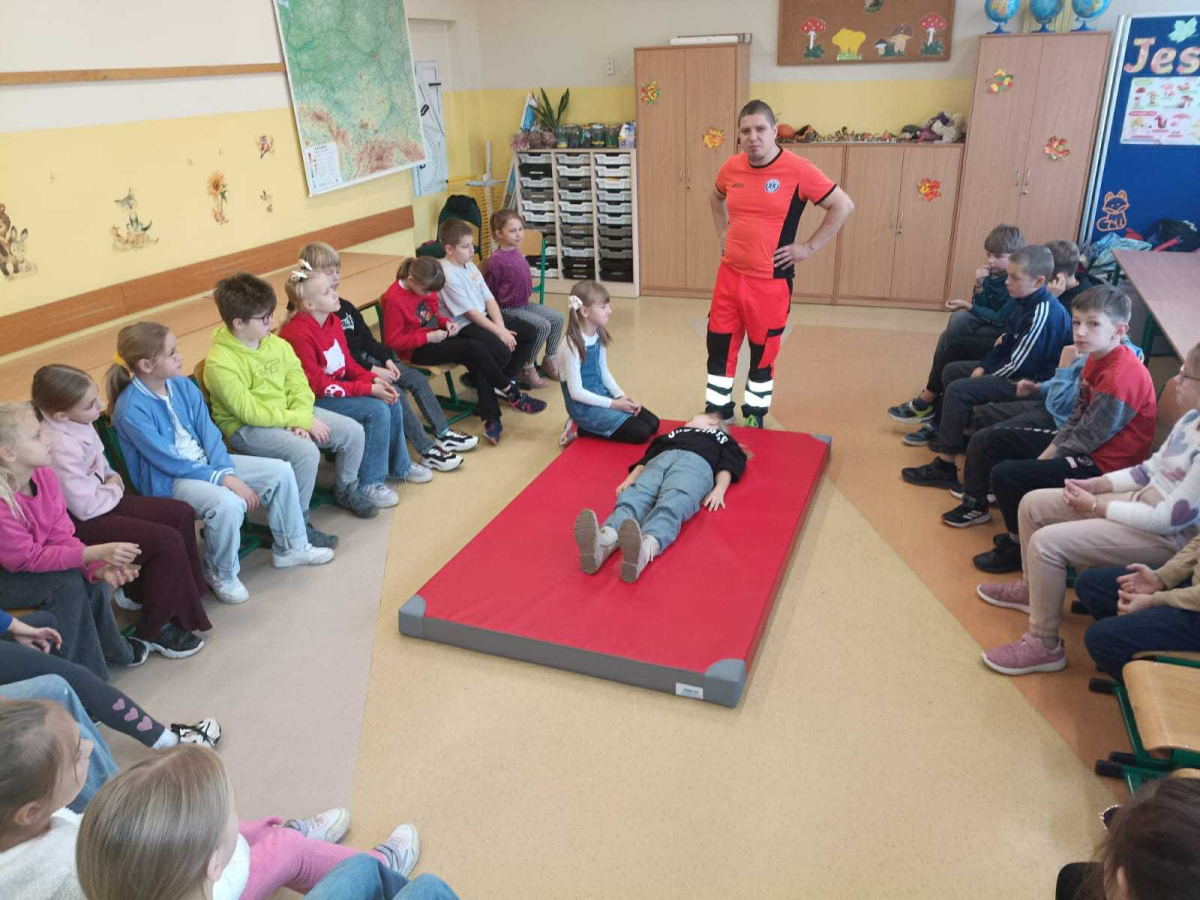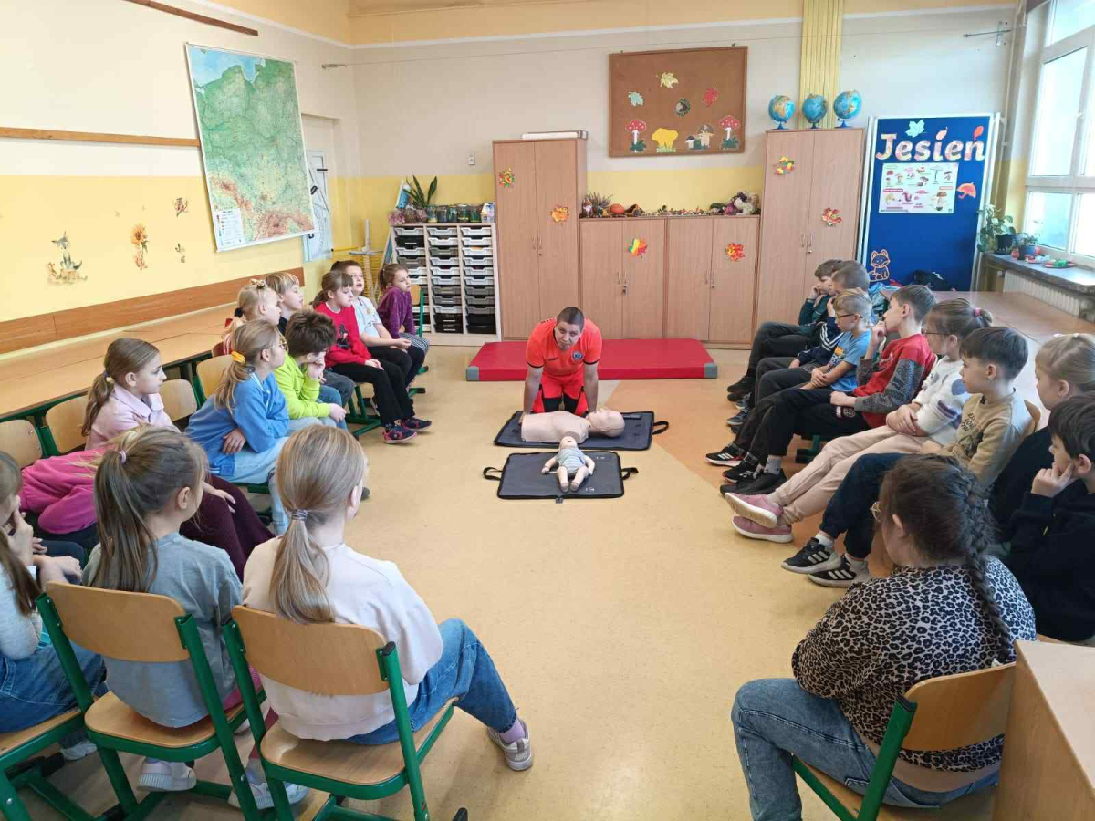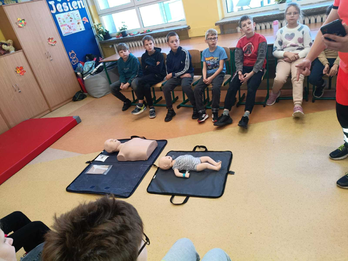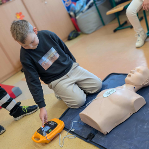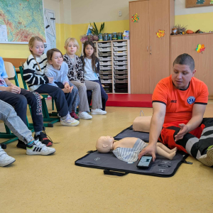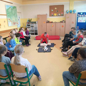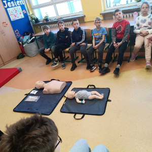 21 października w klasach trzecich odbyła się lekcja pierwszej pomocy przedmedycznej, którą poprowadził ratownik medyczny – Pan Łukasz Kurpet. Uczniowie dowiedzieli się, jak należy reagować w sytuacjach zagrożenia życia. Podczas zajęć dzieci uczyły się, jak pomóc osobie przy zadławieniu, jak prawidłowo ułożyć poszkodowanego w pozycji bocznej ustalonej czy jak wykonać resuscytację krążeniowo-oddechową.
