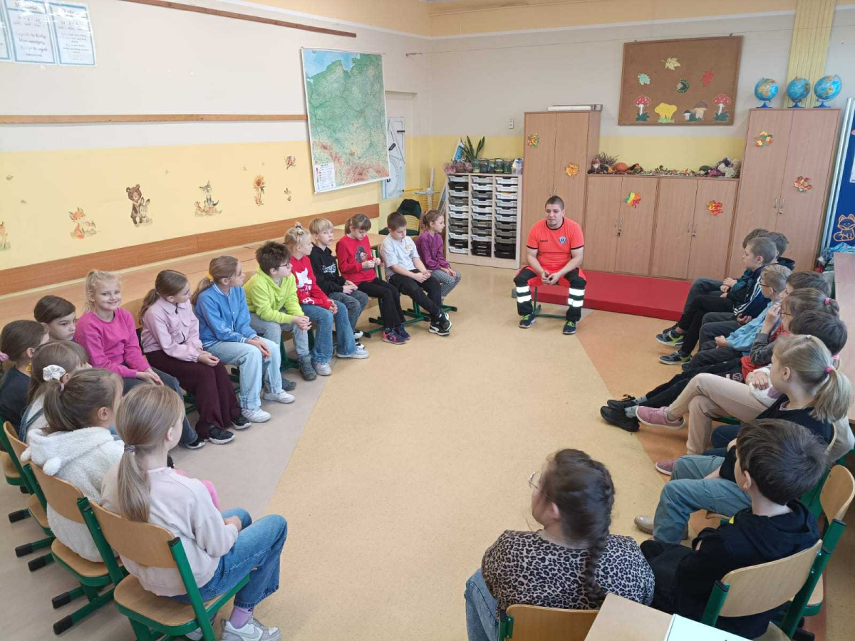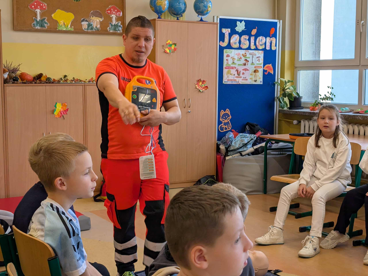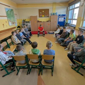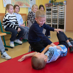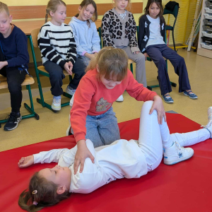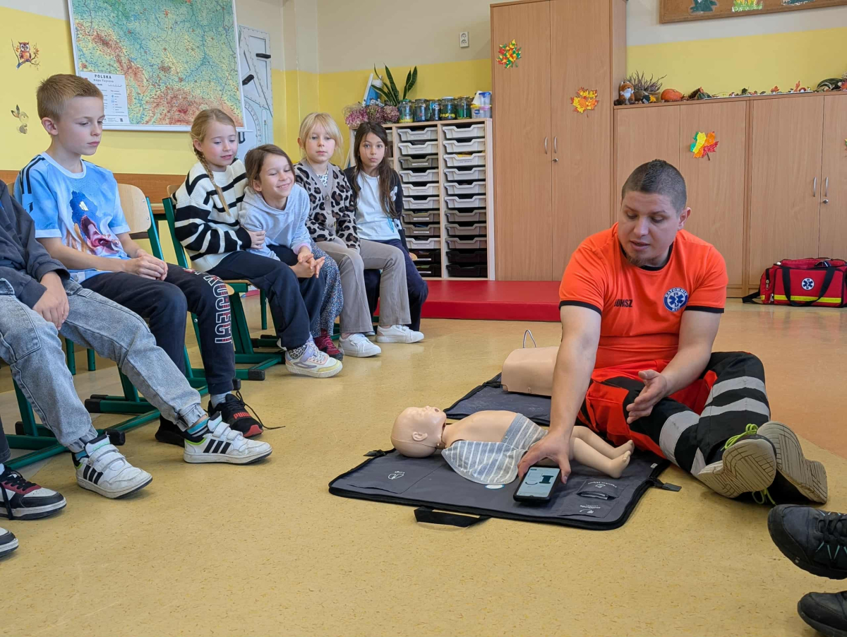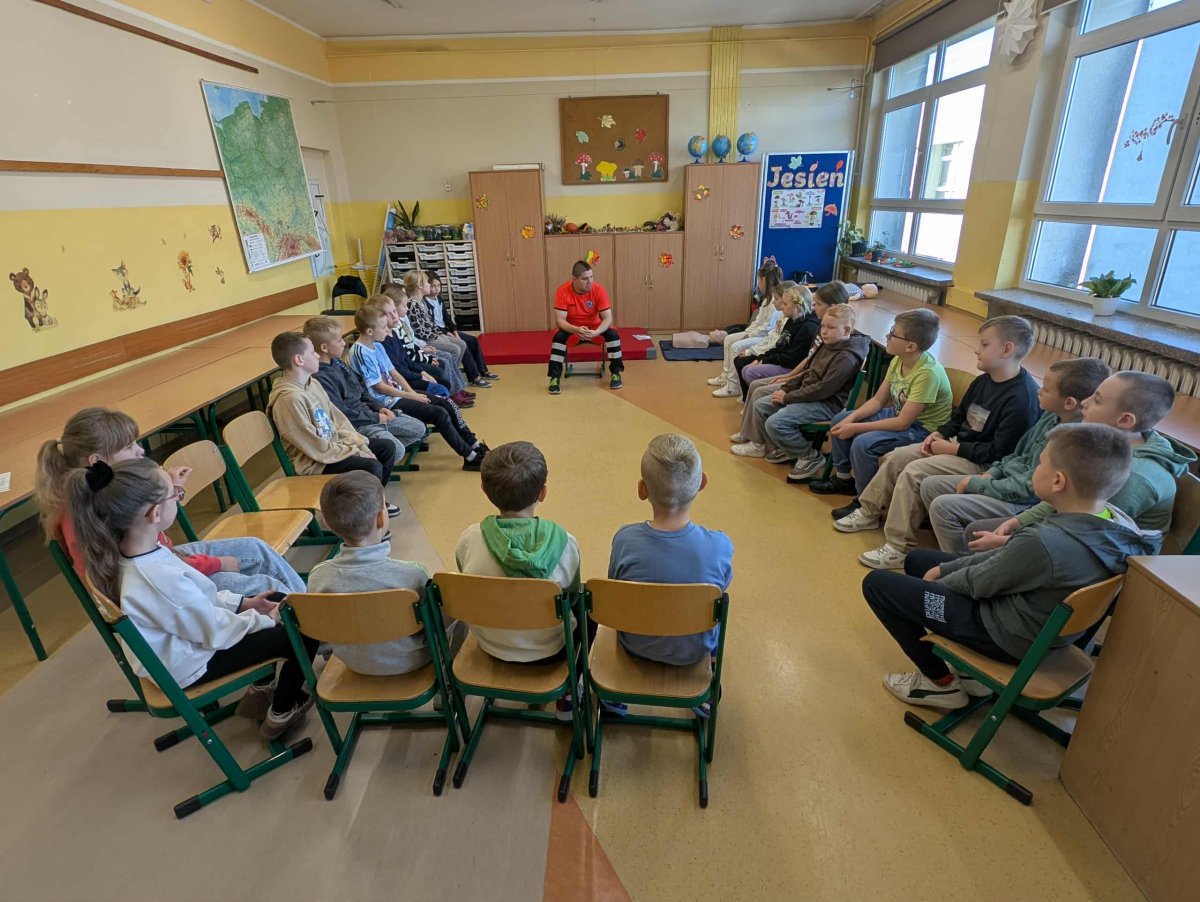 21 października w klasach trzecich odbyła się lekcja pierwszej pomocy przedmedycznej, którą poprowadził ratownik medyczny – Pan Łukasz Kurpet. Uczniowie dowiedzieli się, jak należy reagować w sytuacjach zagrożenia życia. Podczas zajęć dzieci uczyły się, jak pomóc osobie przy zadławieniu, jak prawidłowo ułożyć poszkodowanego w pozycji bocznej ustalonej czy jak wykonać resuscytację krążeniowo-oddechową.