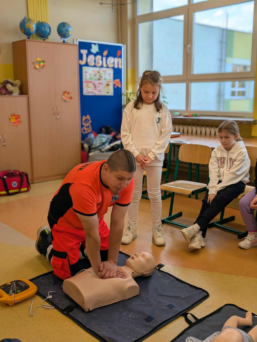 Zajęcia były bardzo ciekawe i praktyczne – uczniowie mogli sami przećwiczyć zdobyte umiejętności pod okiem pana ratownika. Dzięki tej lekcji trzecioklasiści dowiedzieli się, jak ważne jest szybkie i prawidłowe reagowanie w nagłych sytuacjach oraz że każdy może uratować komuś życie.