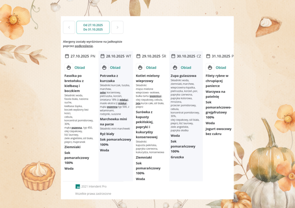 Jadłospis 27-31 października